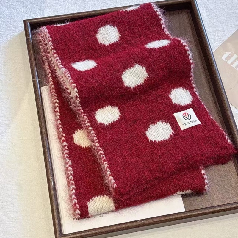 新款羊毛混纺围巾秋冬韩系氛围感情侣针织围脖大圆点百搭保暖披肩