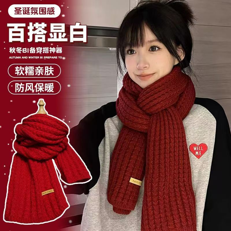 软糯针织毛线围巾女秋冬韩系氛围感围脖加厚保暖护颈披肩时尚百搭