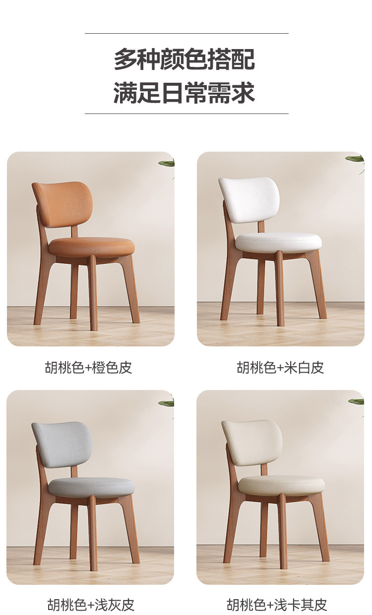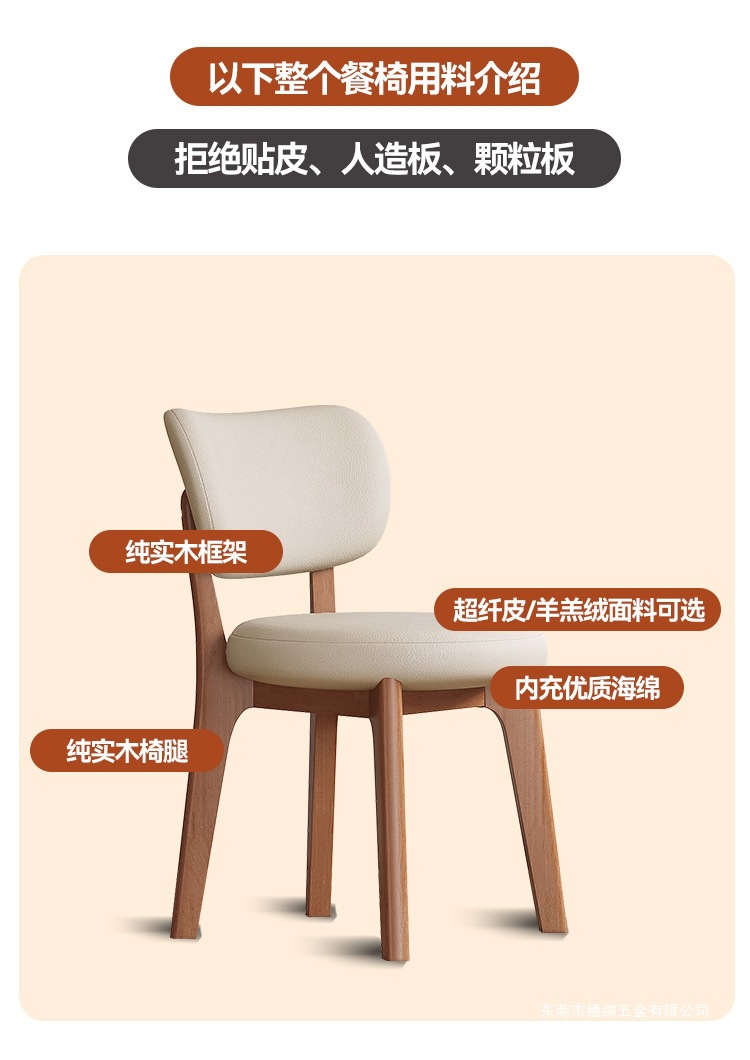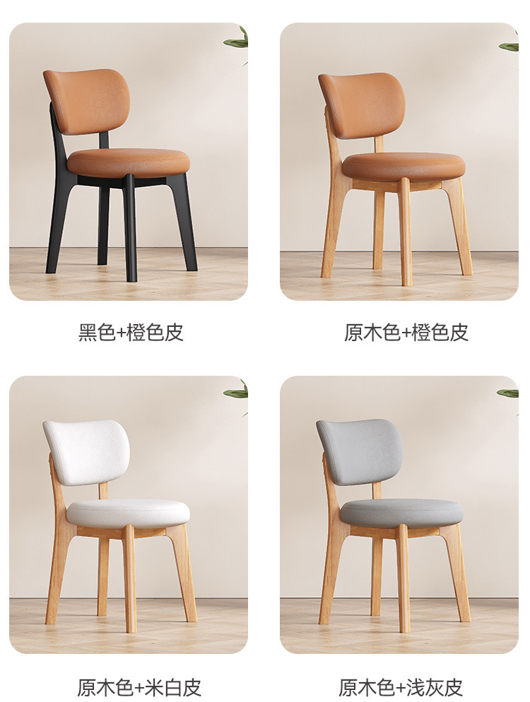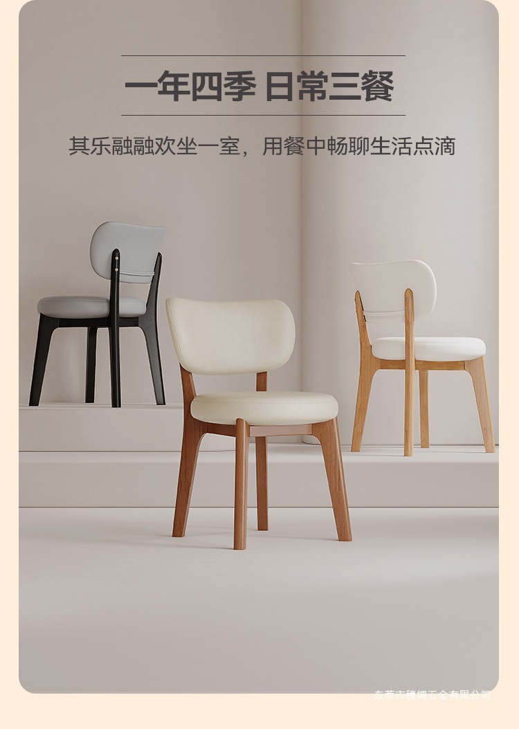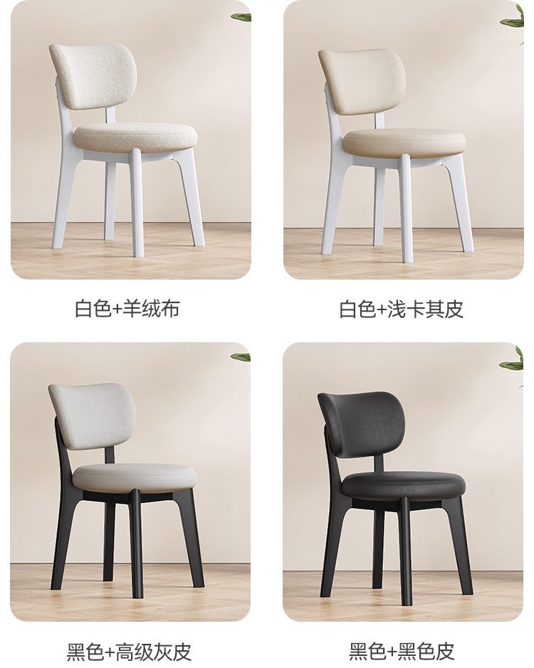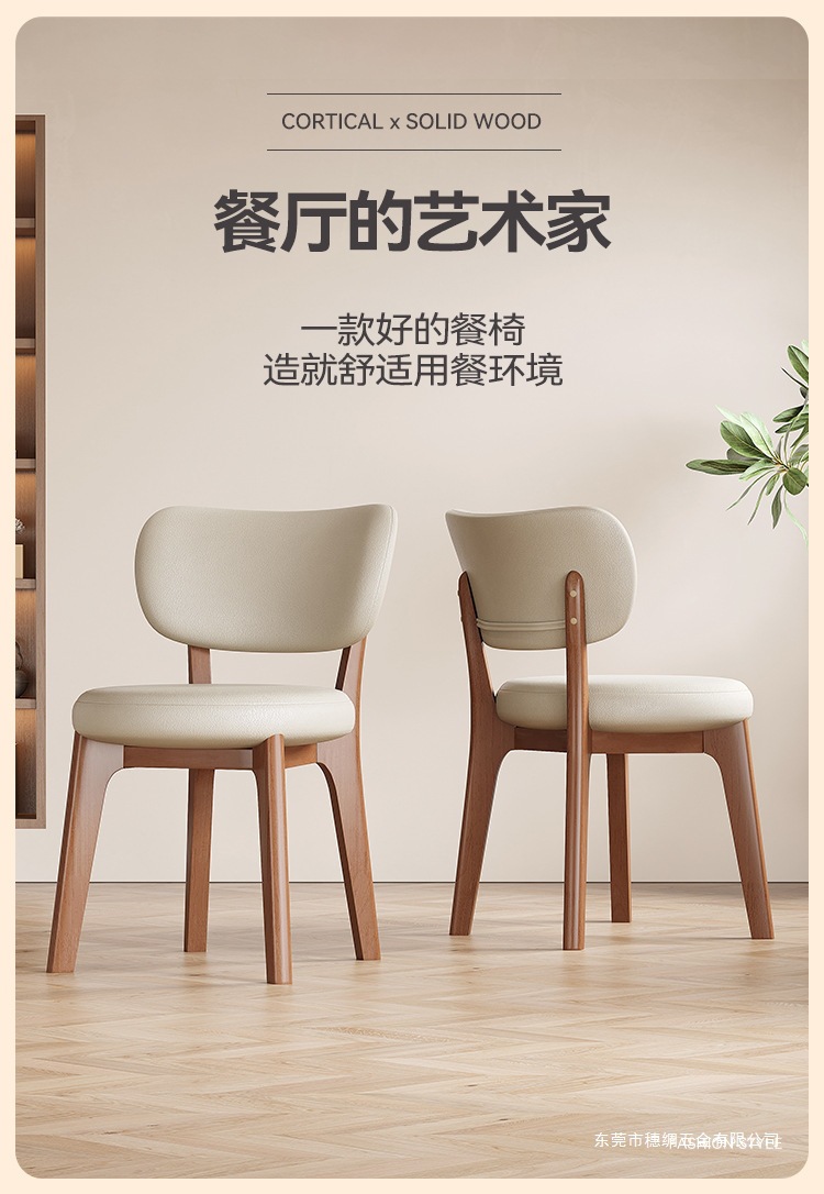 北欧意式实木餐椅家用简约现代轻奢靠背椅椅子餐厅靠背椅奶油风