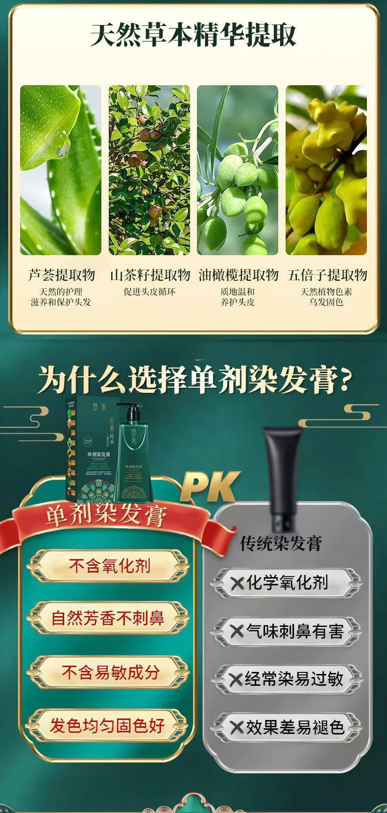 【】苗族植物护染单剂无刺激不伤发染发剂遮盖白发染膏护色