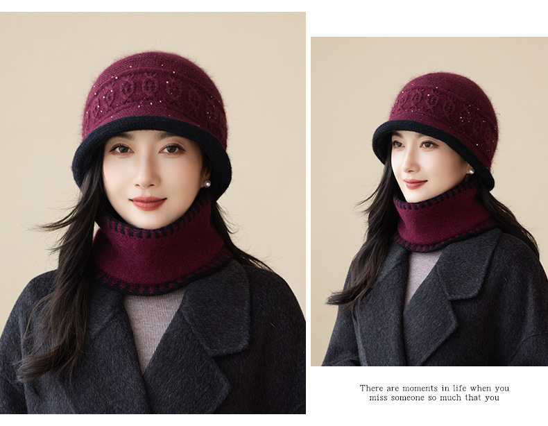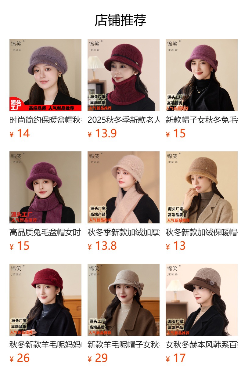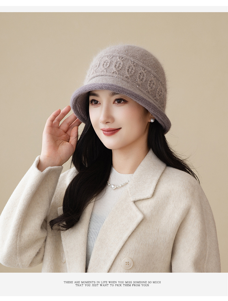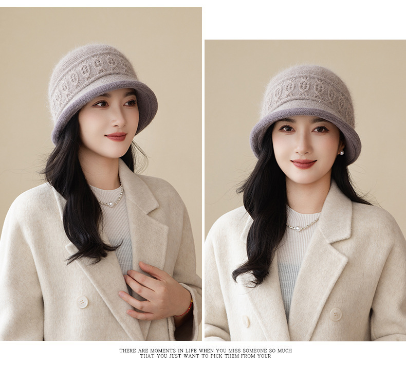 高品质兔毛盆帽女时尚新款加绒加厚妈妈帽冬季护耳保暖针织渔夫帽