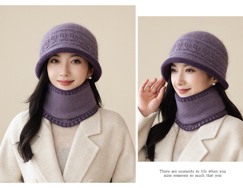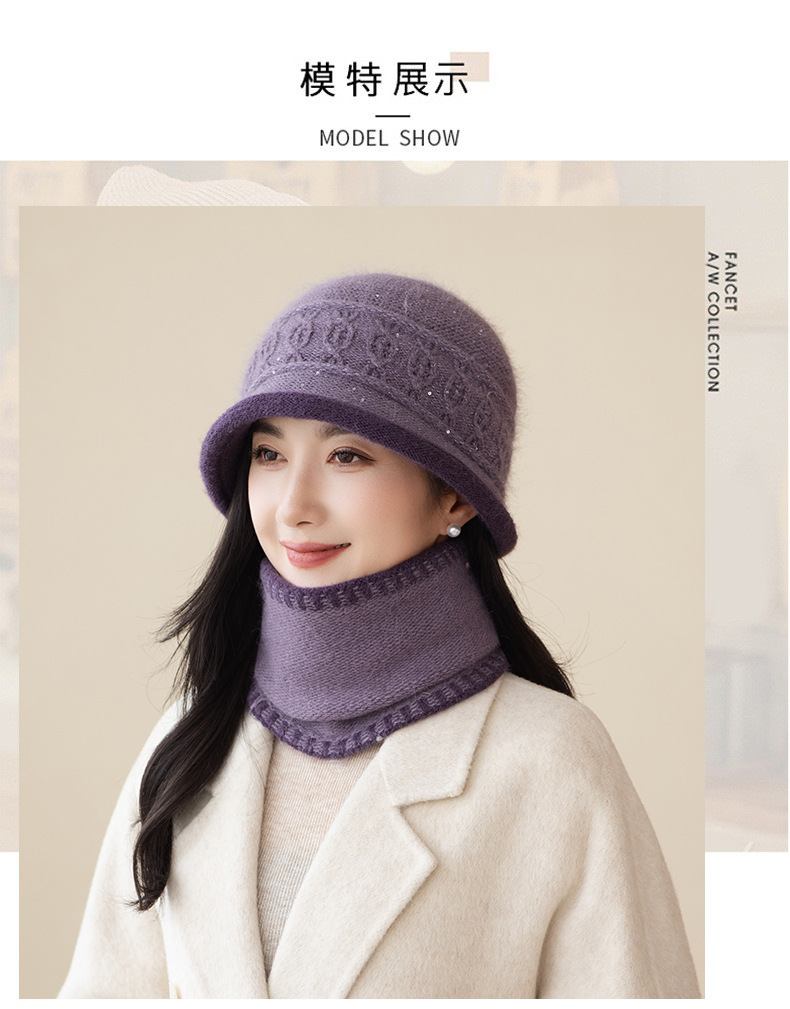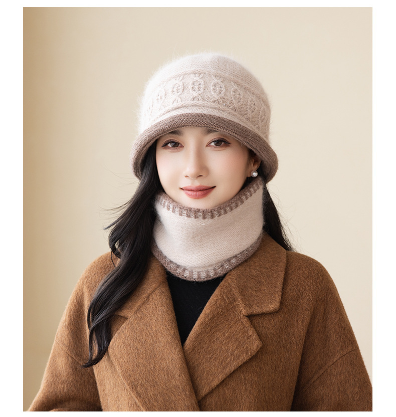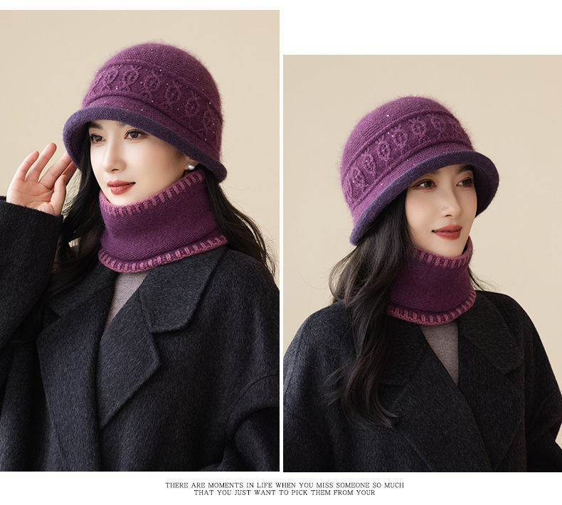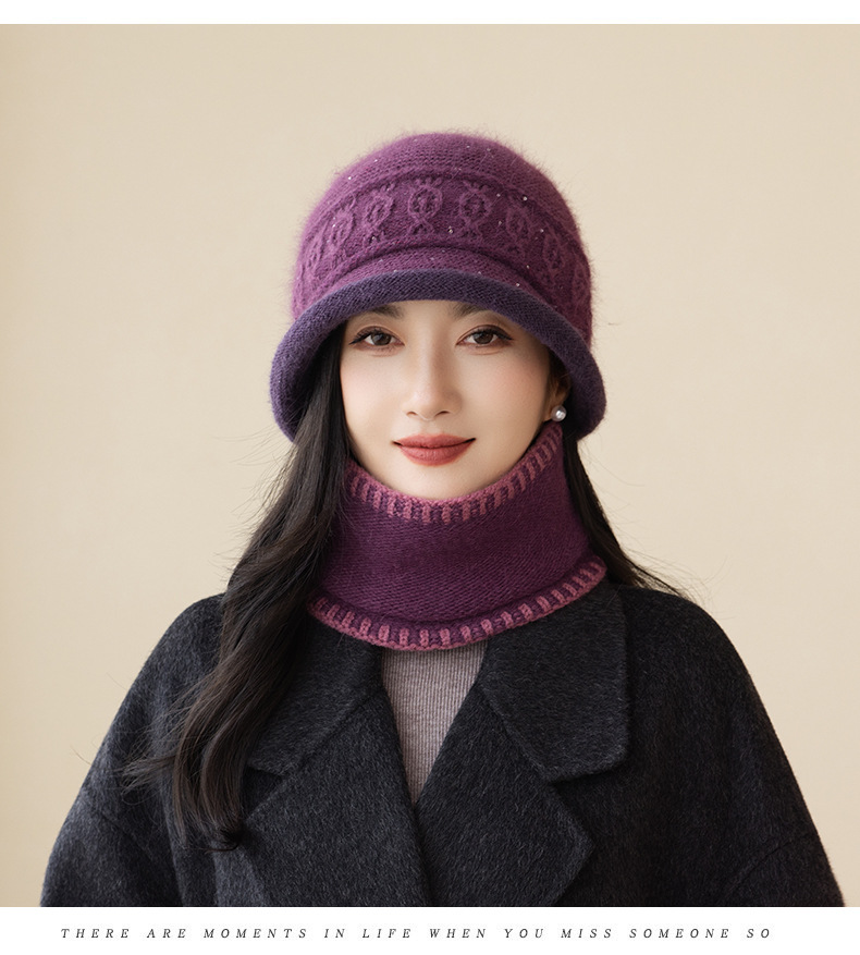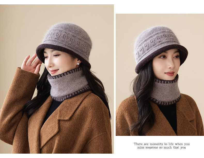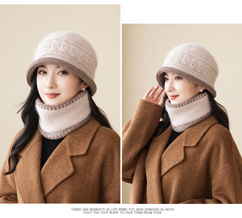2022秋冬起爆二重ベルベットウサギ毛ニット帽女性屋外保温野球帽卸売りマフラーセット潮