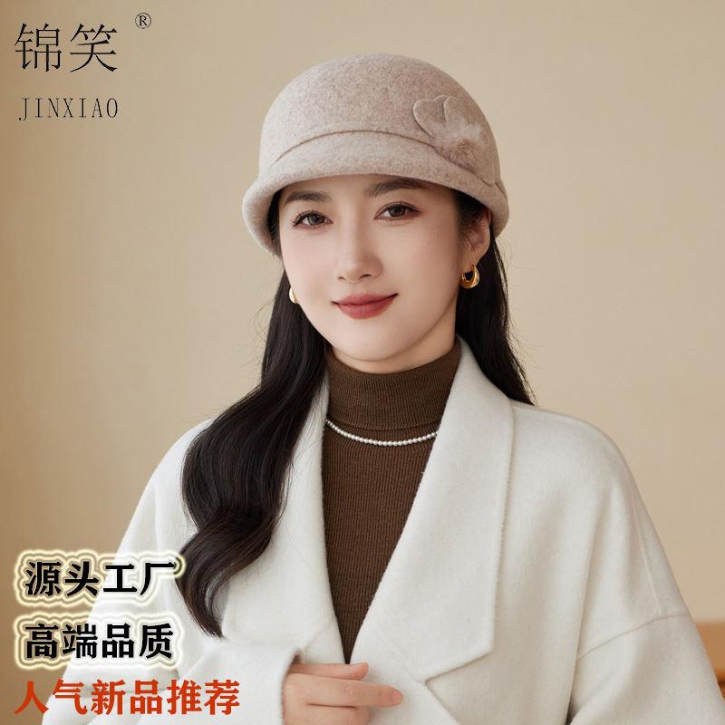 羊毛呢秋冬新款中老年女士马术帽时尚优雅保暖三朵花妈妈盆帽批发