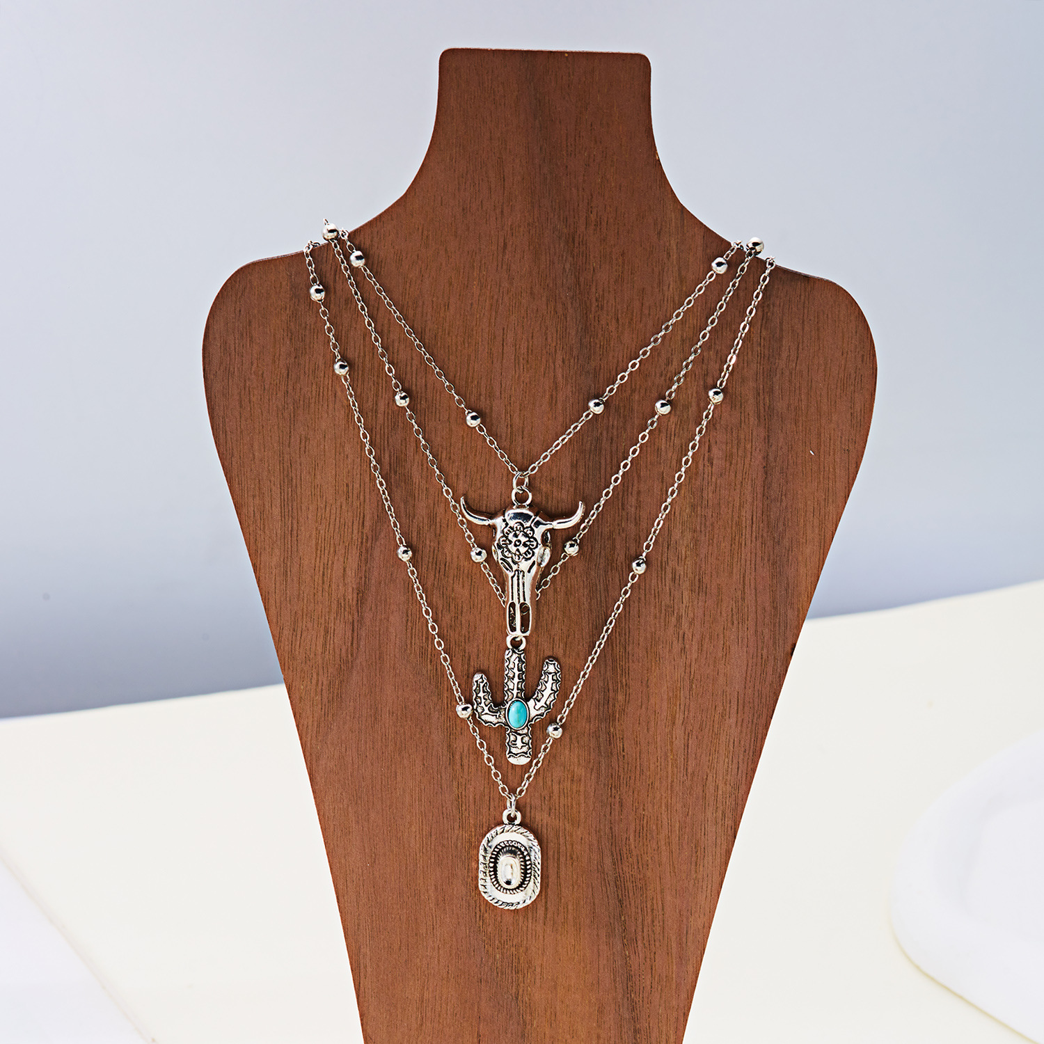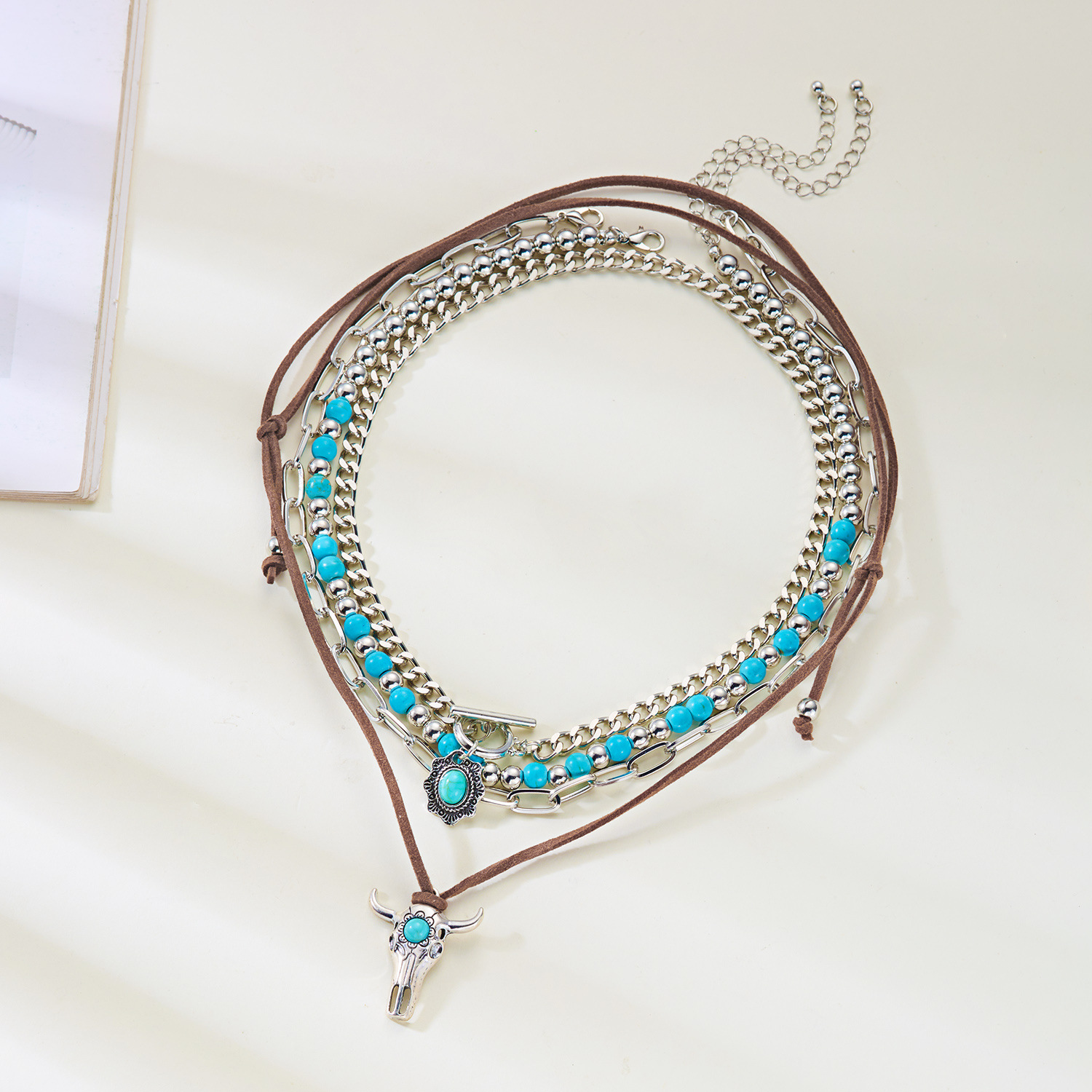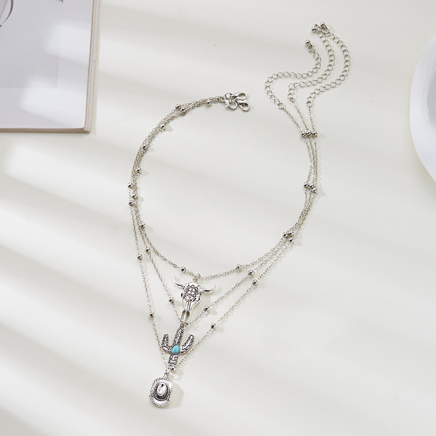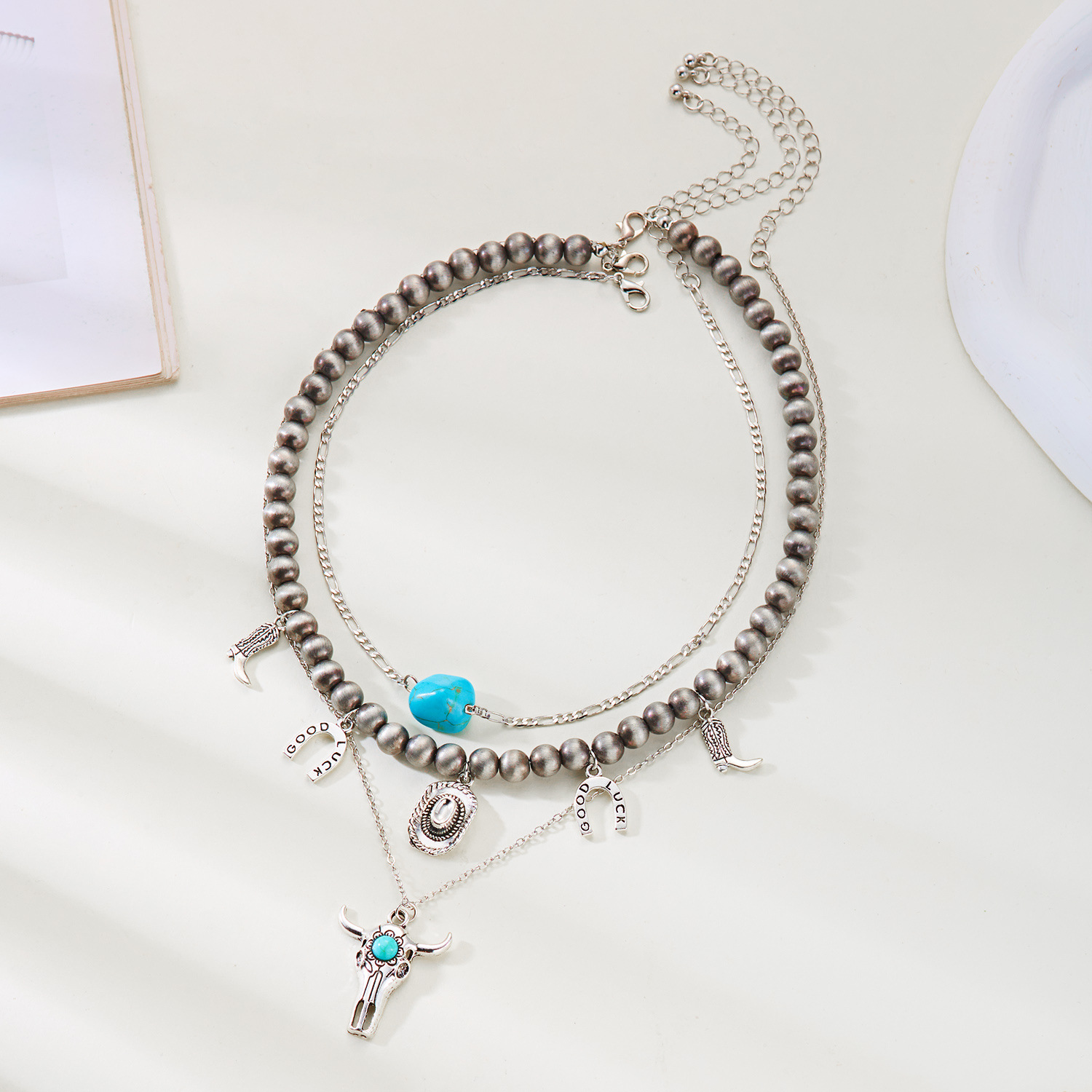 西部牛仔复古民族风绿松石项链套装马蹄靴子牛头波西米亚叠戴项饰