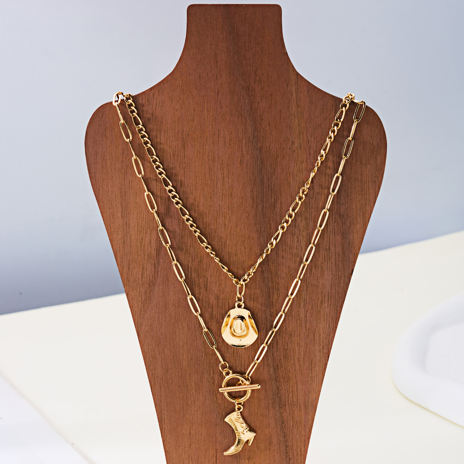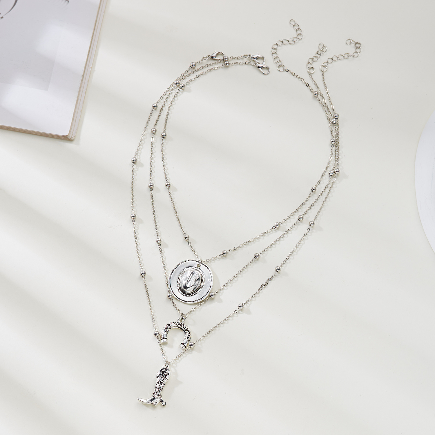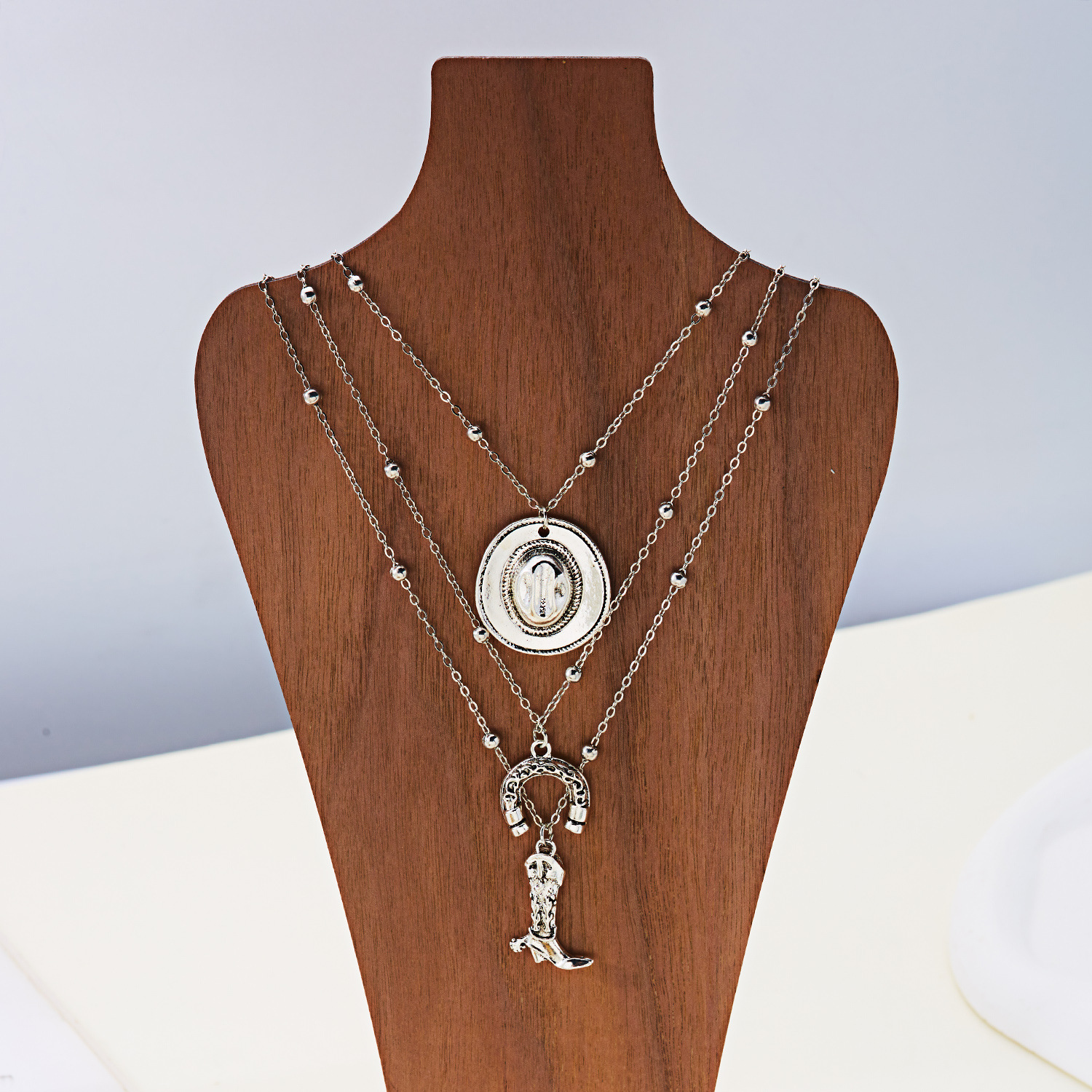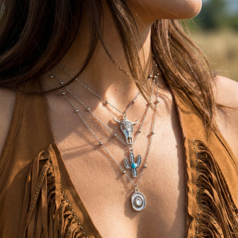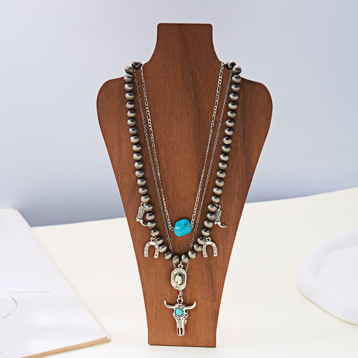 西部牛仔复古民族风绿松石项链套装马蹄靴子牛头波西米亚叠戴项饰