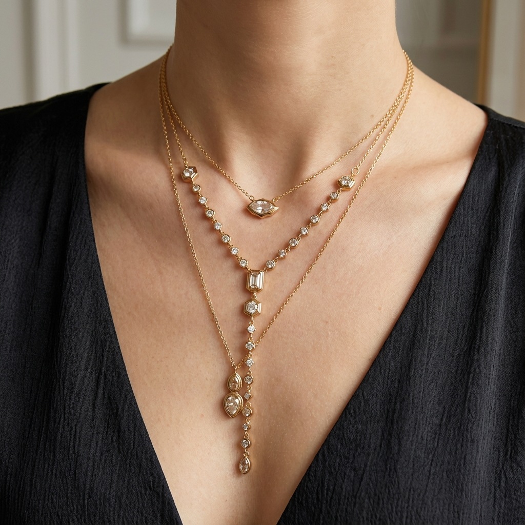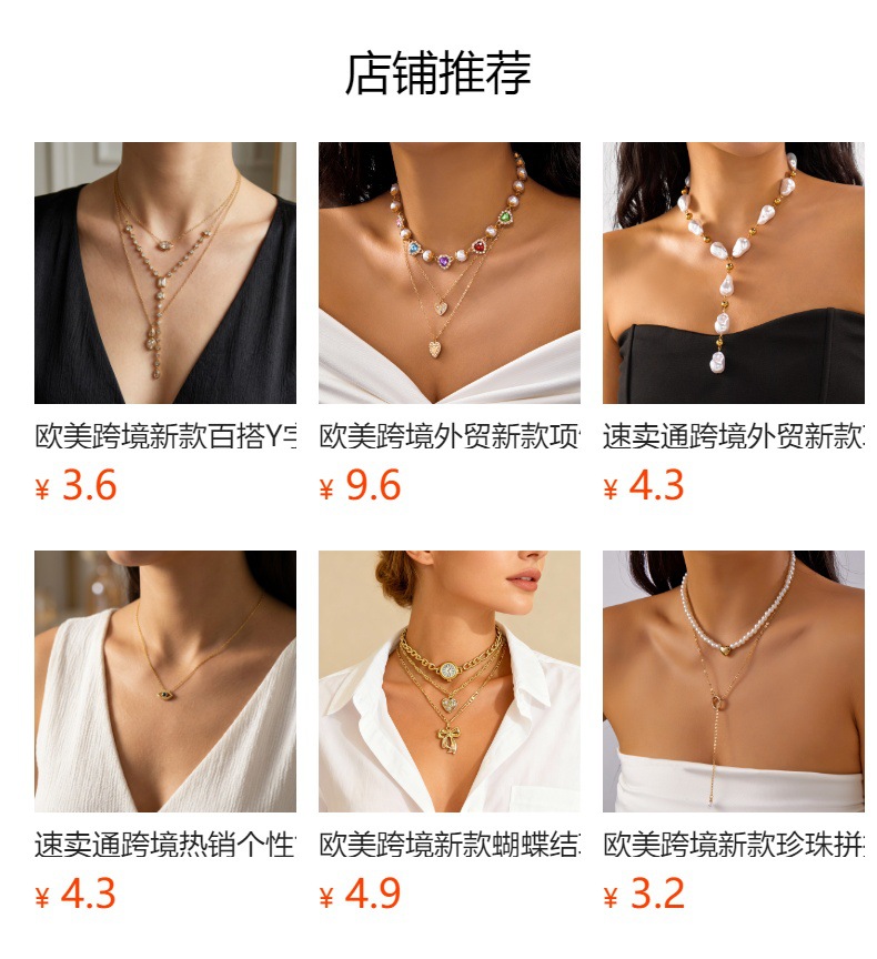 欧美跨境新款百搭Y字型项饰女 简约创意几何水滴锆石吊坠项链套装
