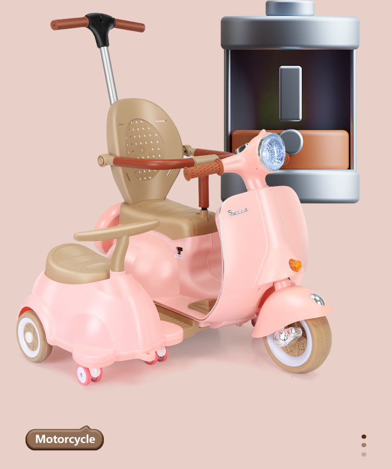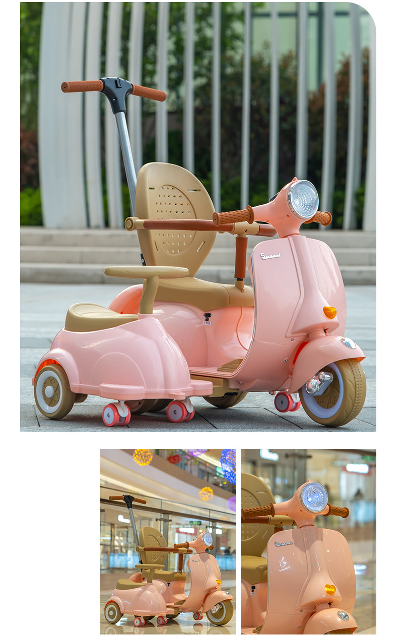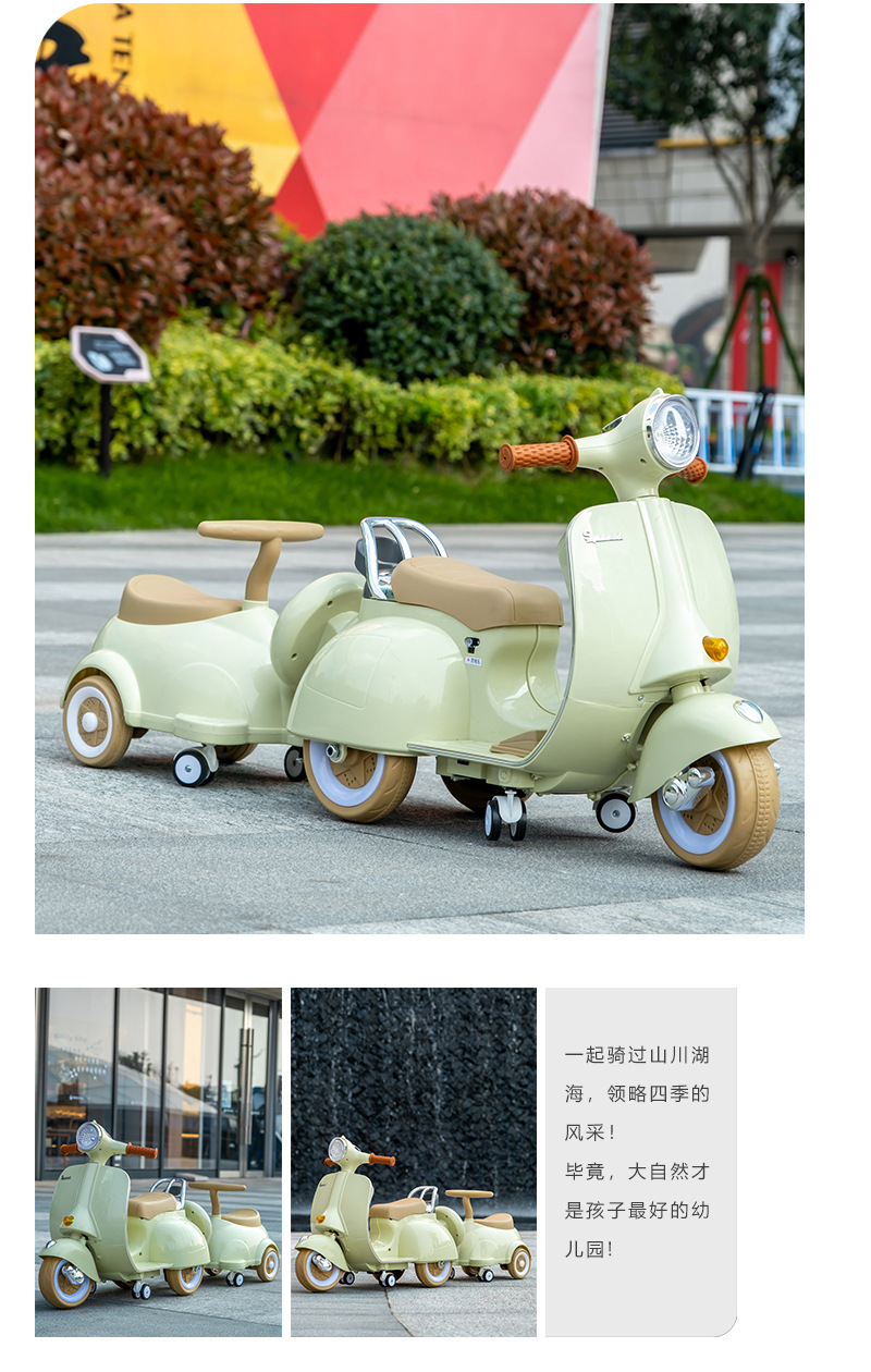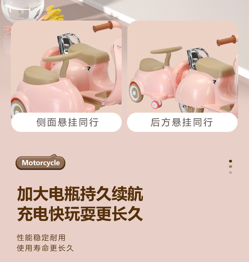 双人儿童电动摩托车复古款可坐人充电宝宝玩具车音乐灯光遥控童车