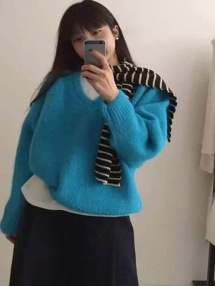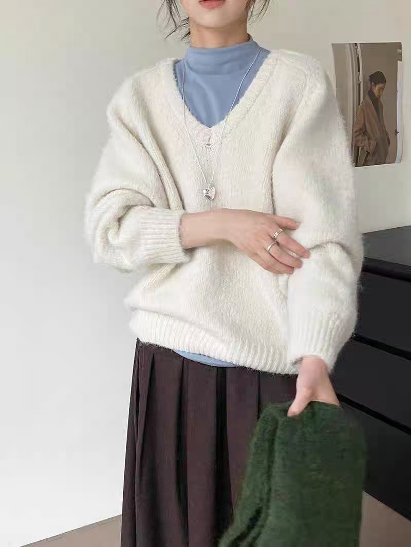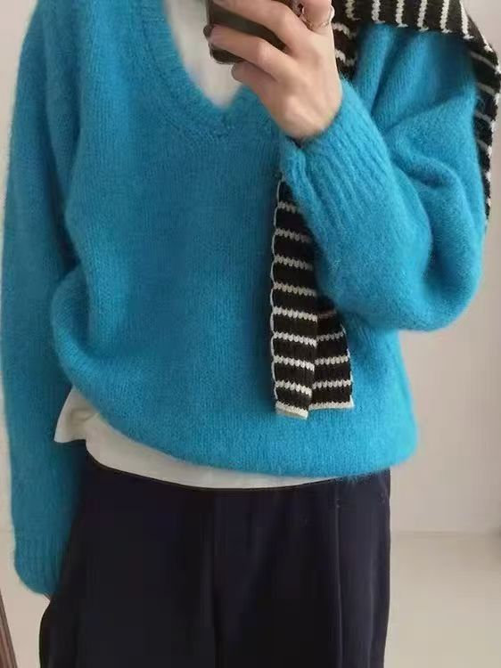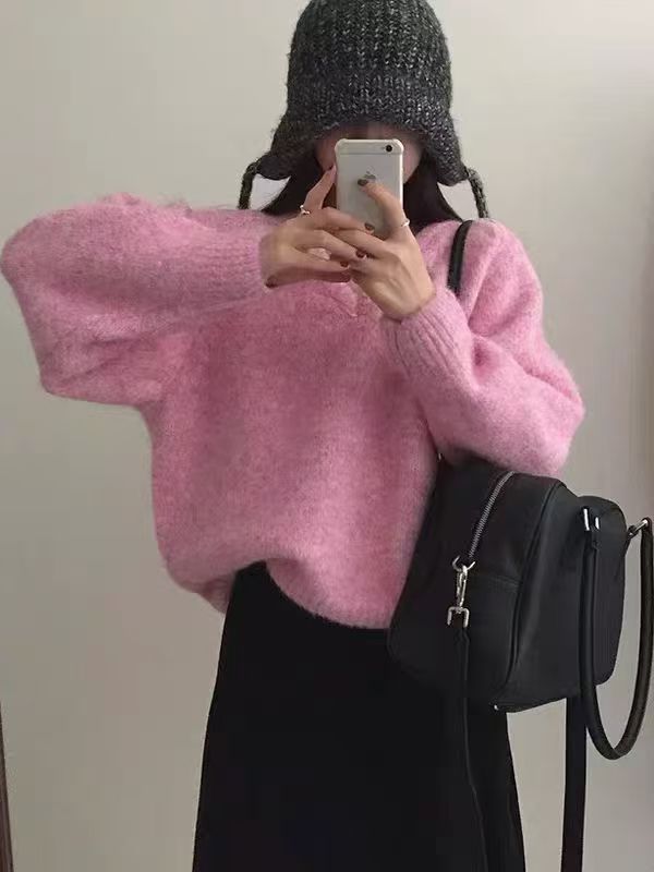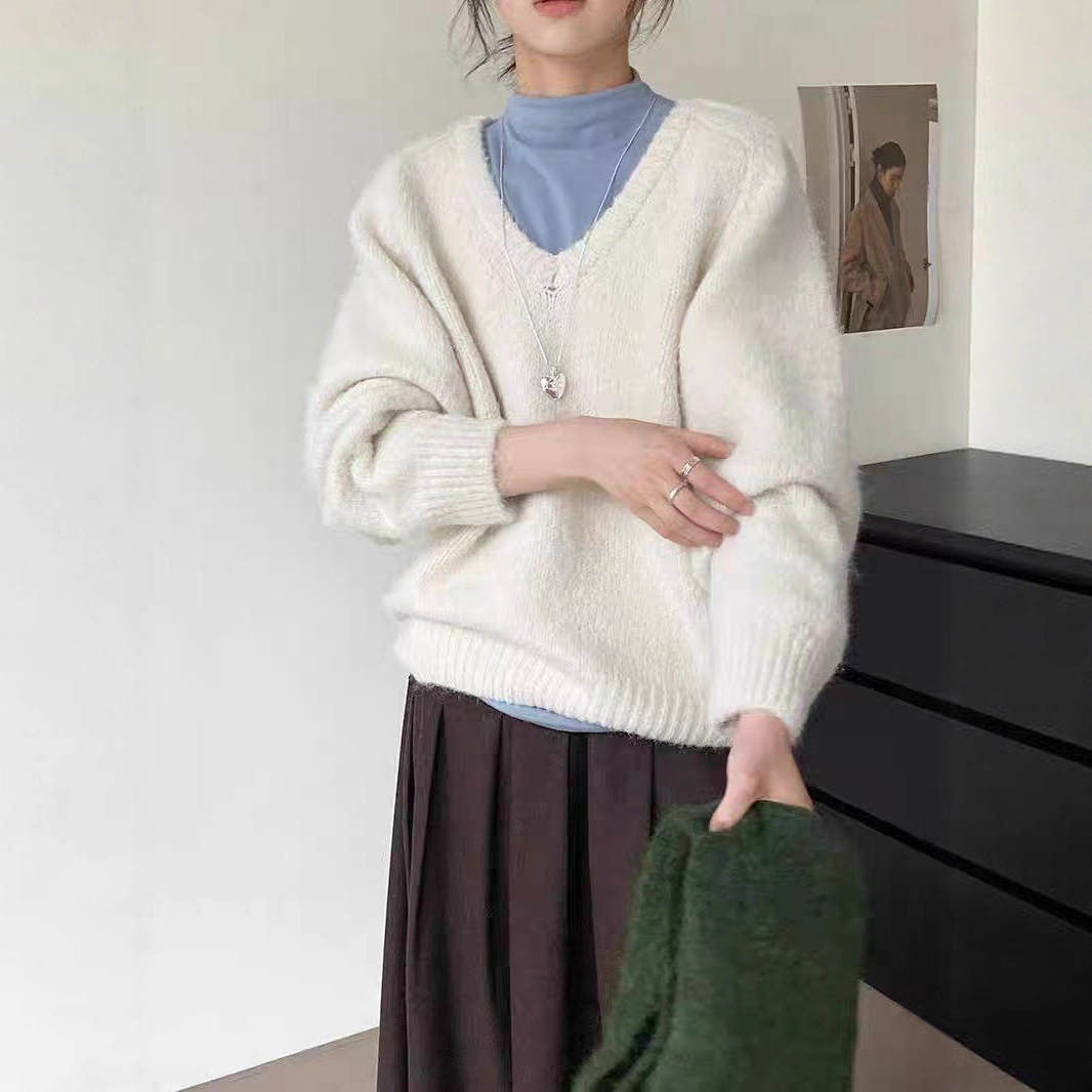 韩版基础百搭V领宽松显瘦毛衣女套头25秋冬新款慵懒风针织衫上衣