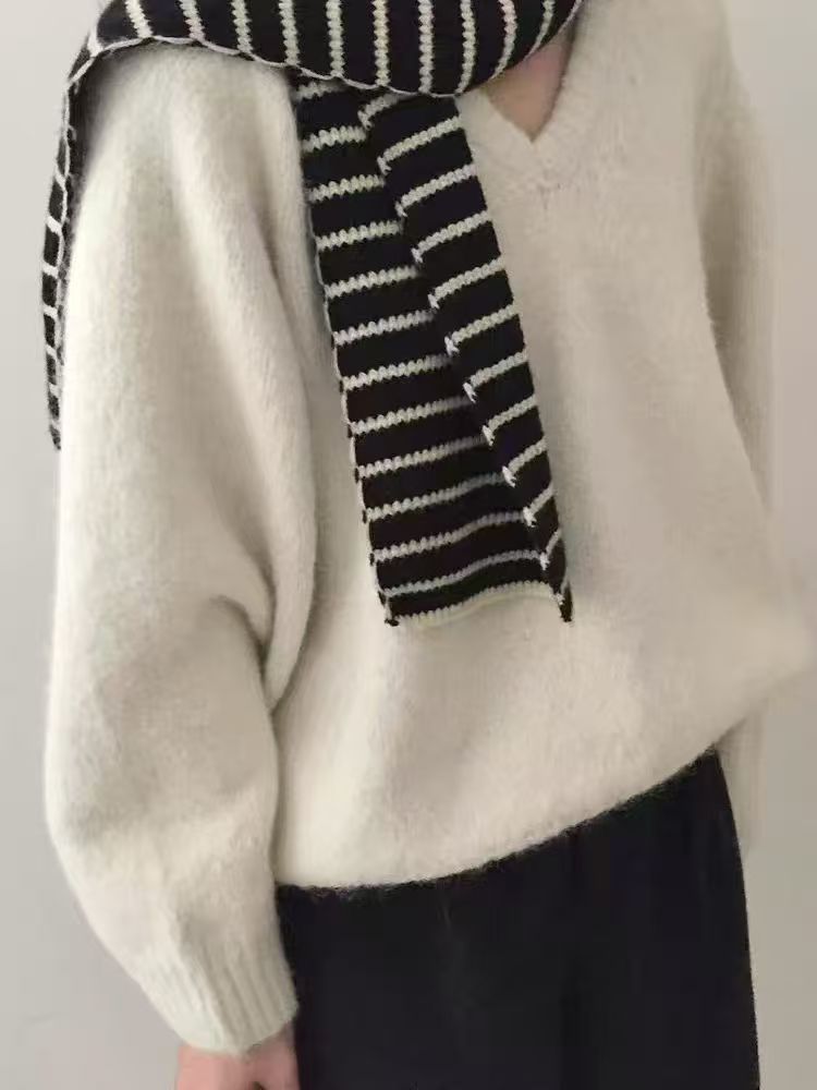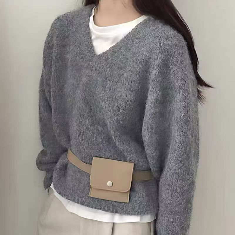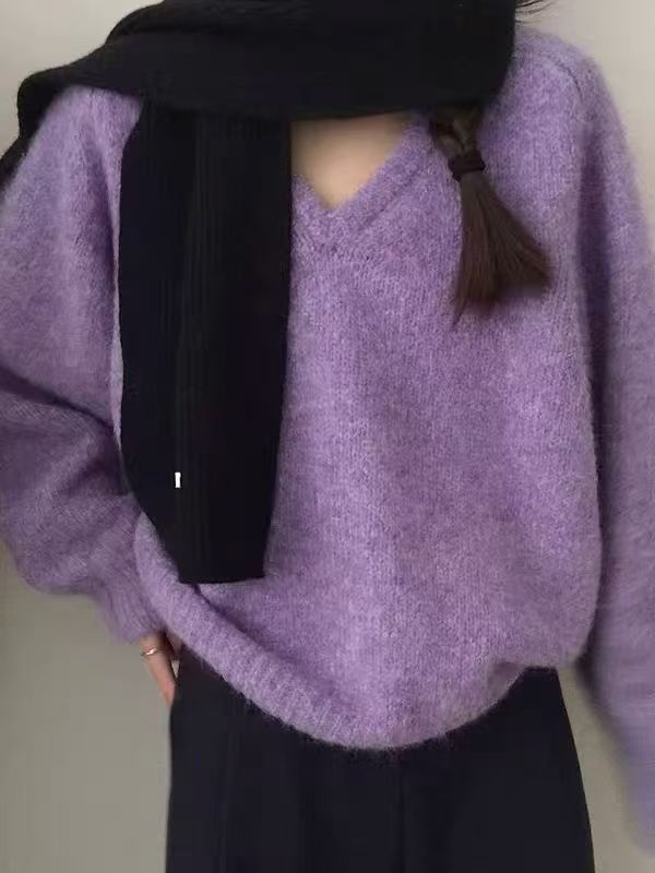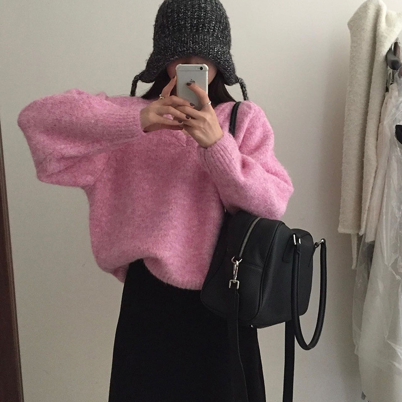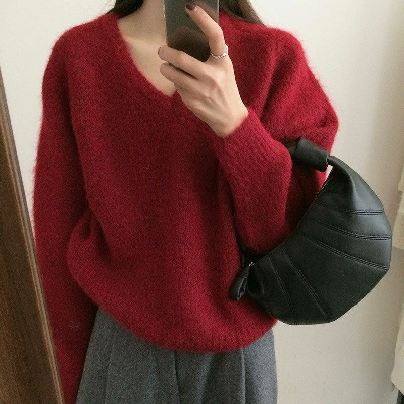 韩版基础百搭V领宽松显瘦毛衣女套头25秋冬新款慵懒风针织衫上衣