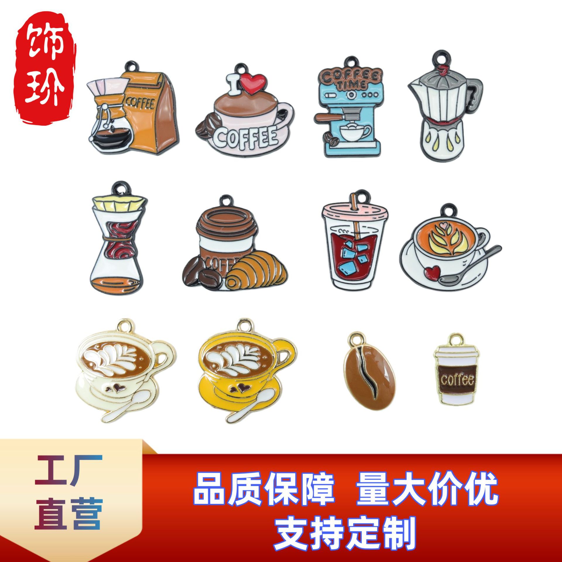 跨境咖啡系列吊坠diy合金饰品配件项链耳环钥匙扣挂件包包配饰