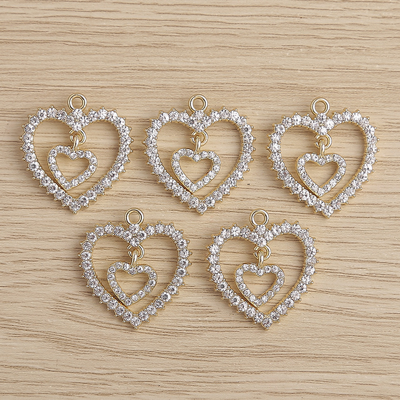 4つ/バッグファッションデザイン感二重愛ペンダントにドリル部品diyアクセサリーペンダントペンダント