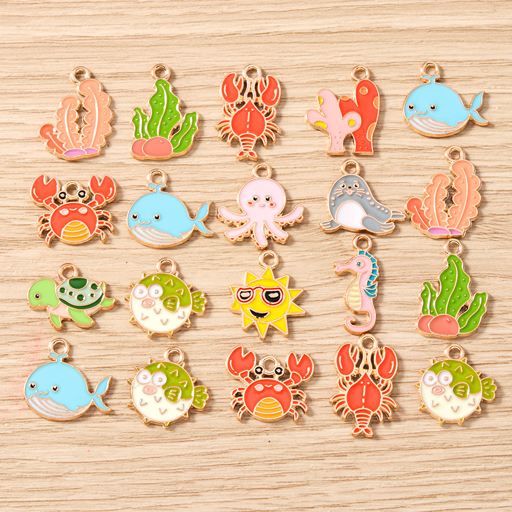 10个/包海藻珊瑚吊坠海豚乌龟挂件项链钥匙扣龙虾螃蟹diy饰品配件