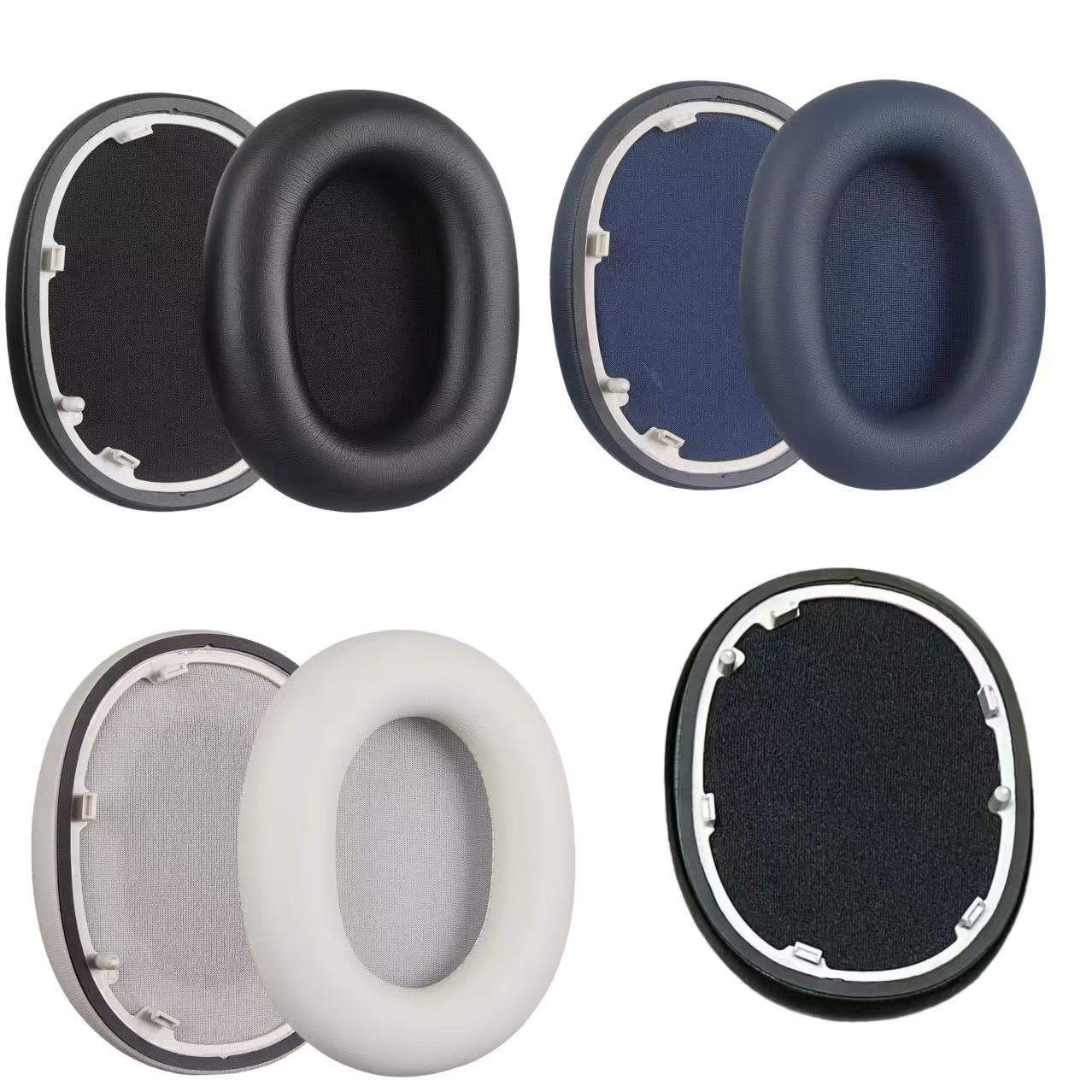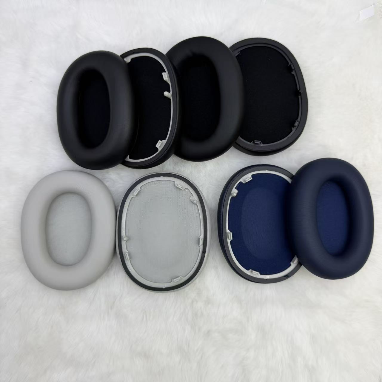 颜色 黑色蛋白皮耳套一个,铂银色蛋白皮耳套一个,蓝色蛋白皮耳套一个,黑色网款头梁保护套一条