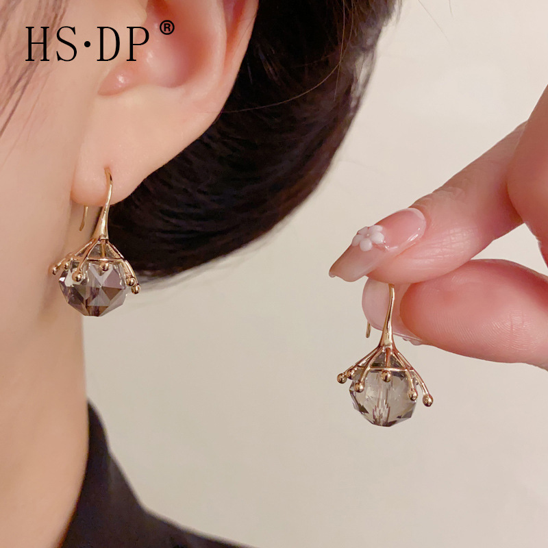 小众时尚复古简约金属爪子灰水晶耳钩个性轻奢独特设计感耳坠批发