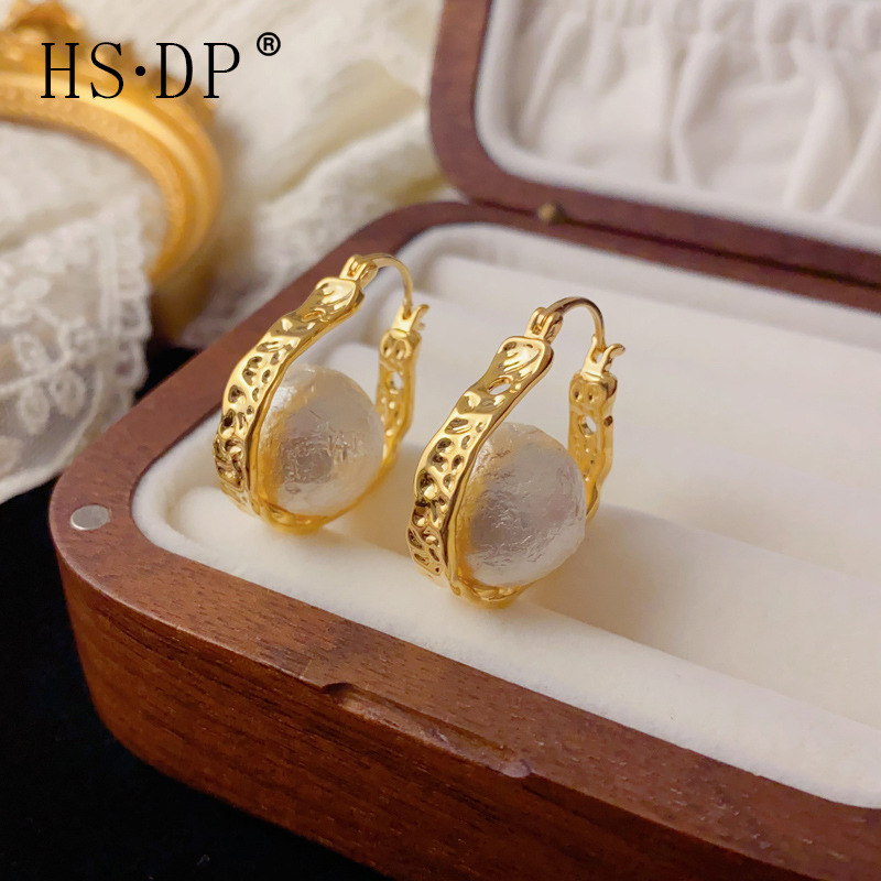 シンプルなレトロなファッションの高級感には、ドリルの金属リングのイヤリングが入っています。