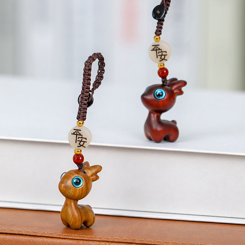 いっしょの鹿のカップルの自動車のキーホルダーの鍵は鎖の檀木の携帯電話のペンダントの男女を掛けます。