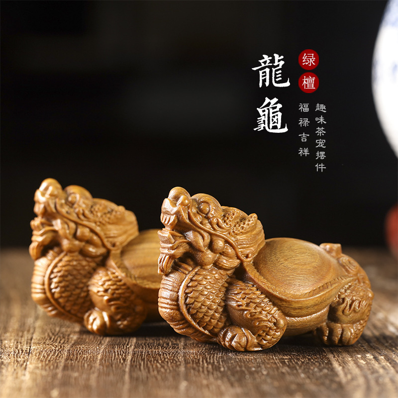 緑檀木大龍亀置物彫刻木彫りの手の工芸品文は中国式のデスクトップのお茶を遊んで贈り物をかわいがります。