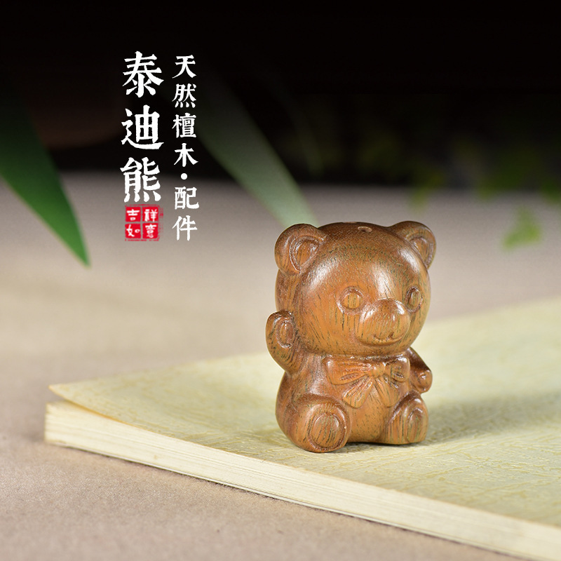緑檀木彫りテディベアオフィス小物自動車バッグペンダントペンダント文字遊びハンドル男女プレゼント