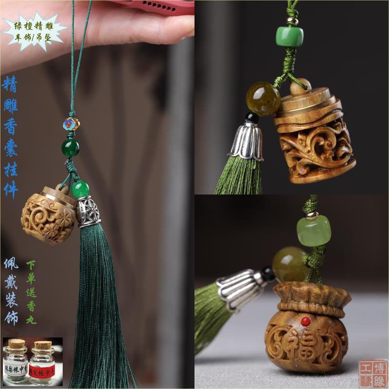 緑白檀中空サシェボール携帯電話ペンダントキーホルダー車のペンダントアンティークバックパックポータブルジュエリーディフューザー