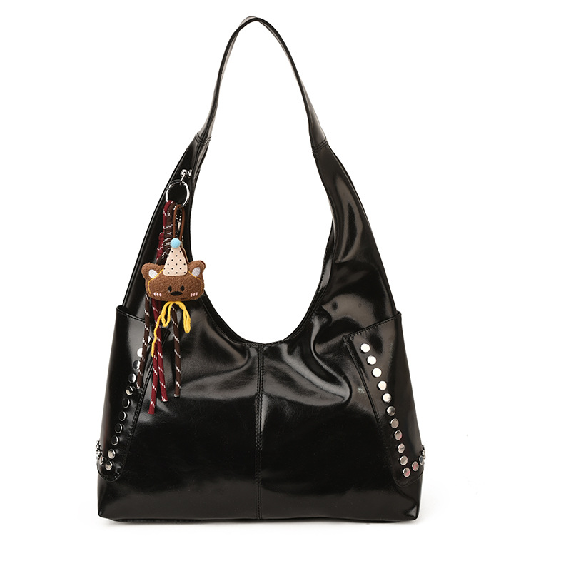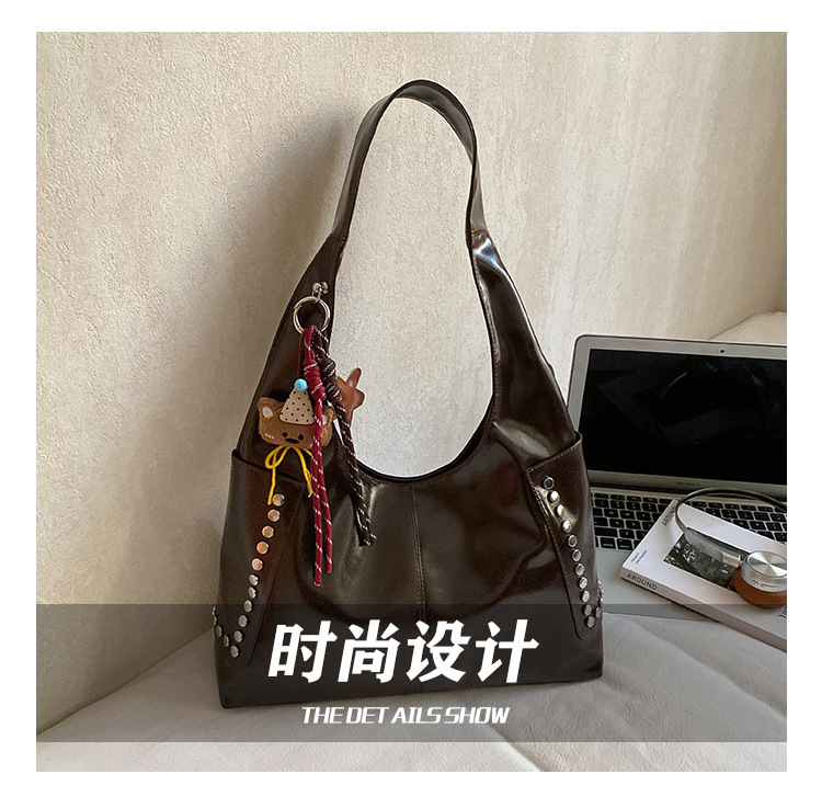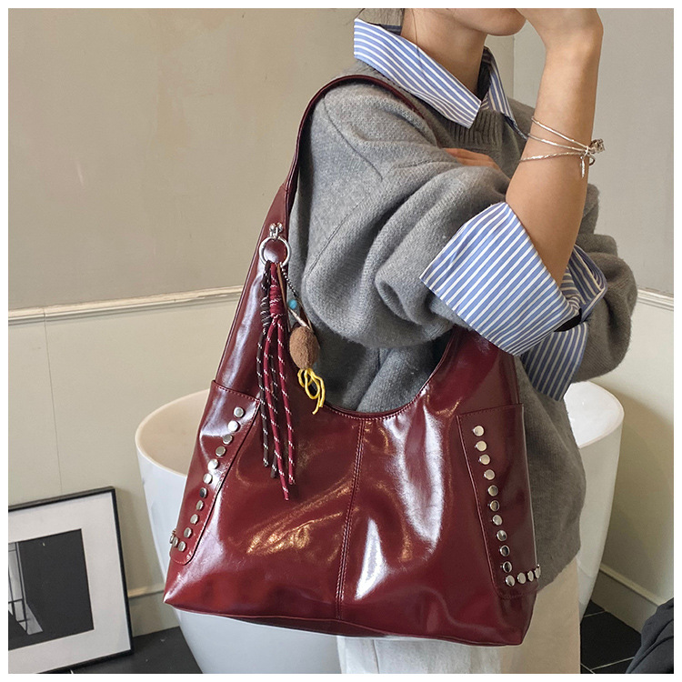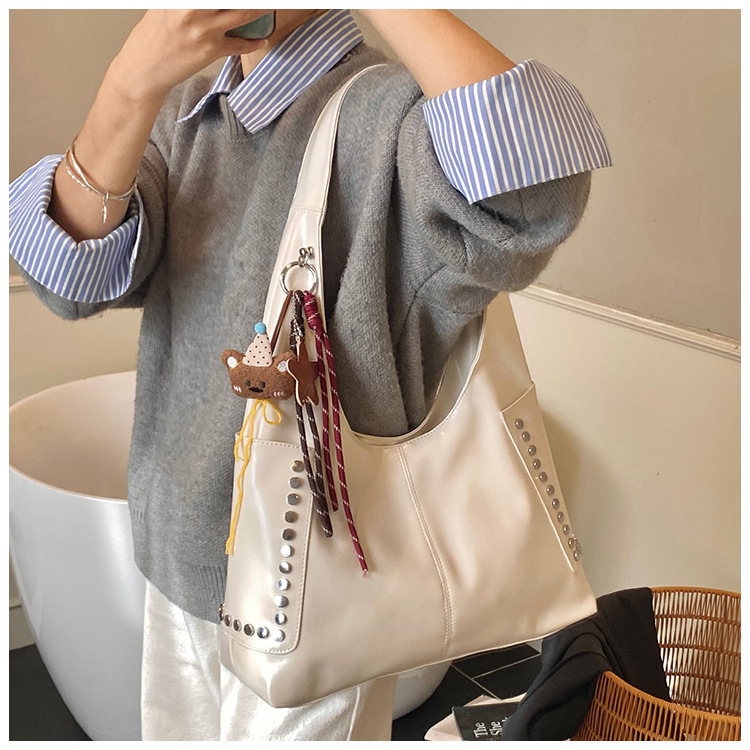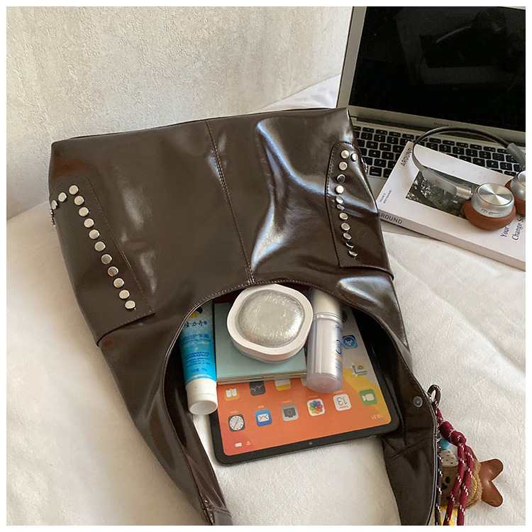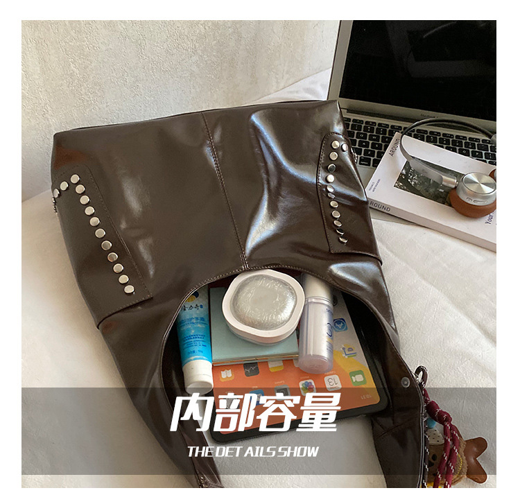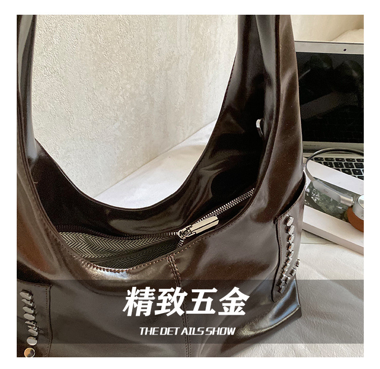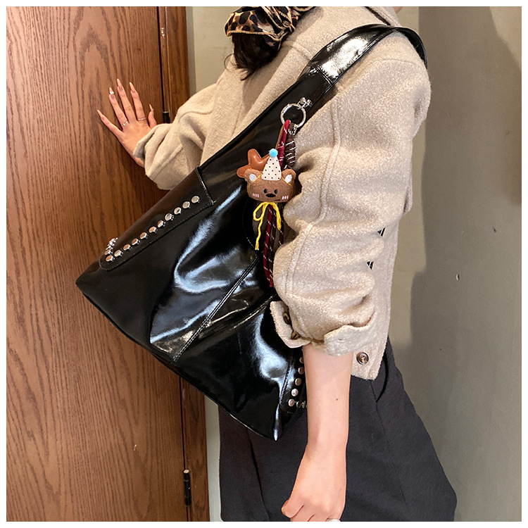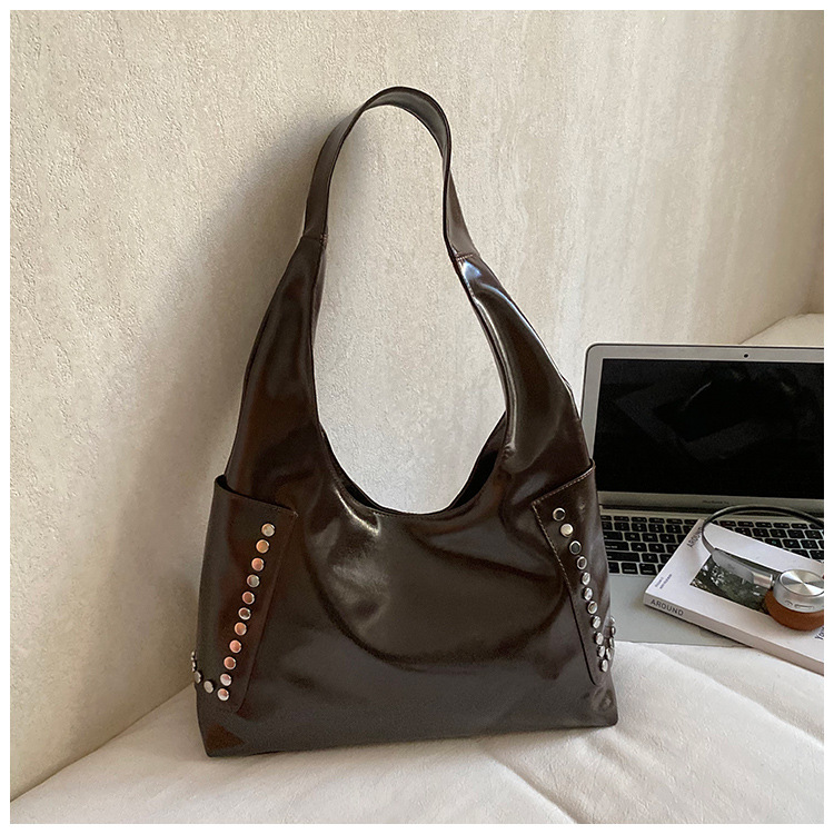 复古亮面铆钉单肩腋下包欧美时尚机车包简约大容量时尚百搭手提包