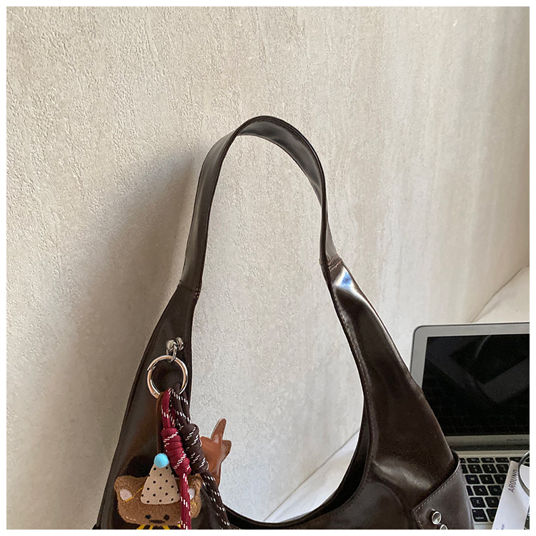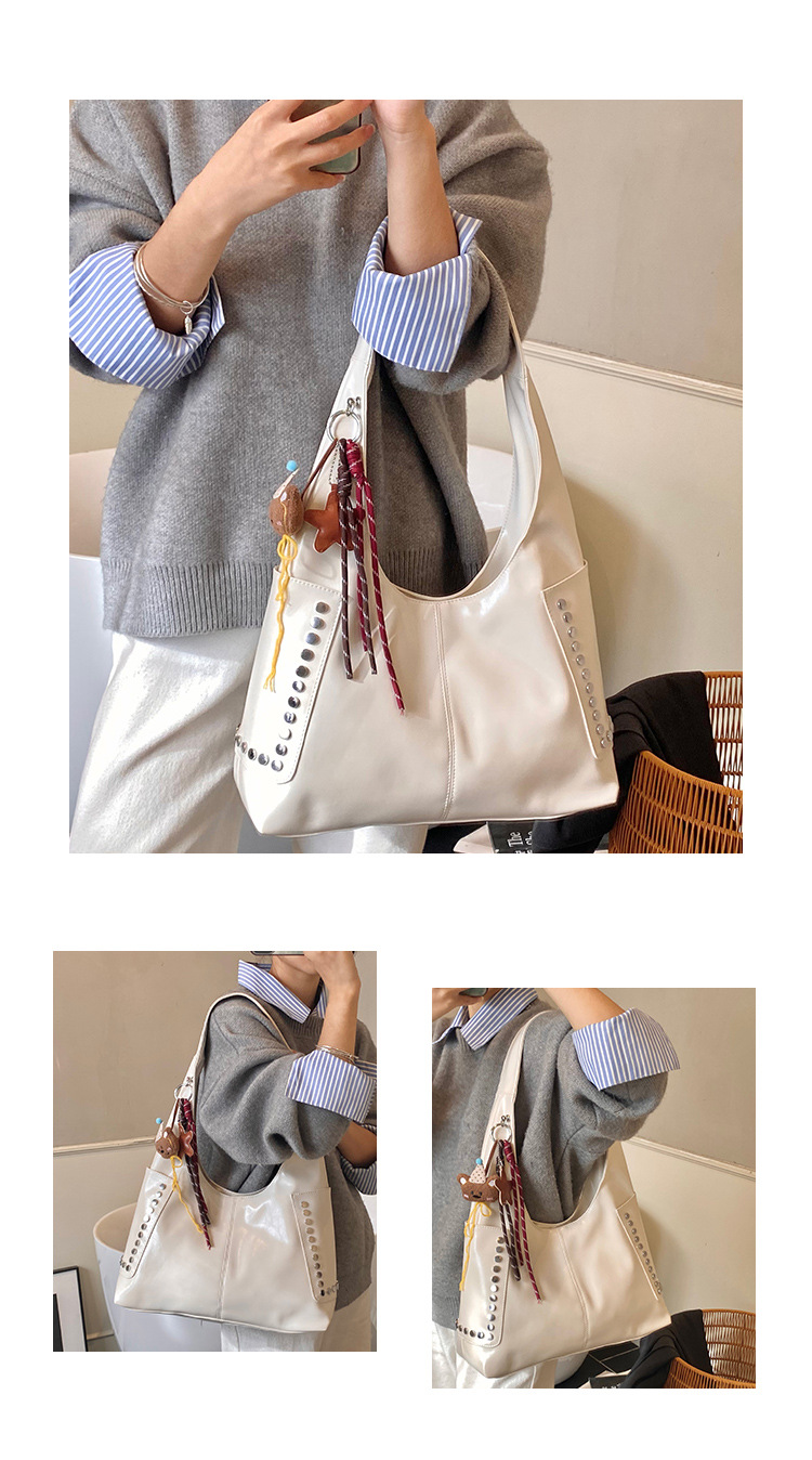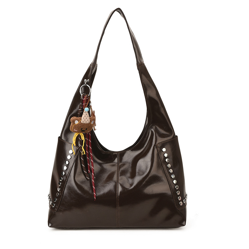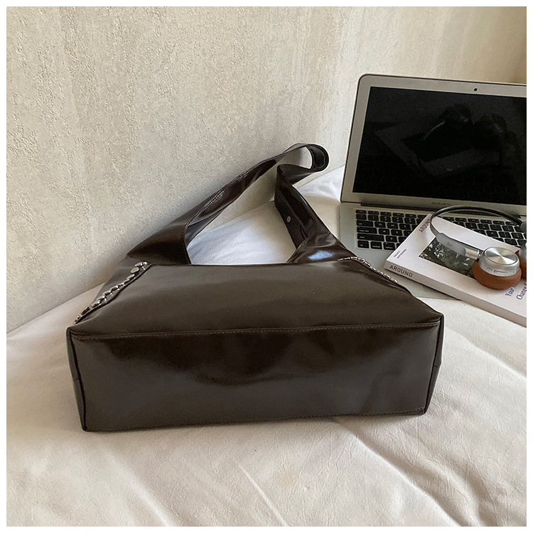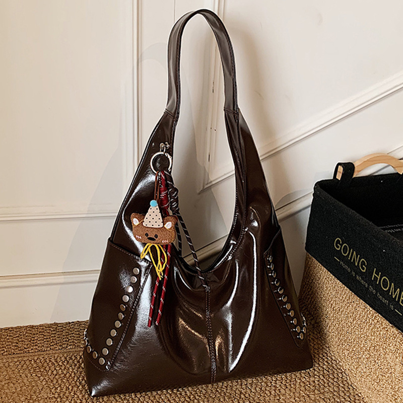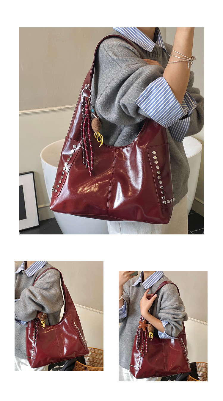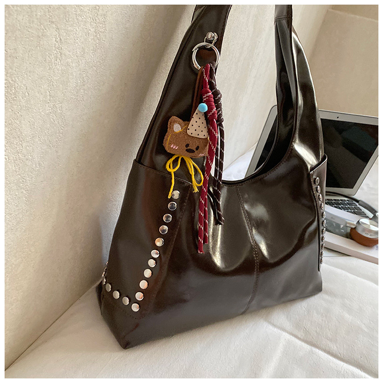 复古亮面铆钉单肩腋下包欧美时尚机车包简约大容量时尚百搭手提包