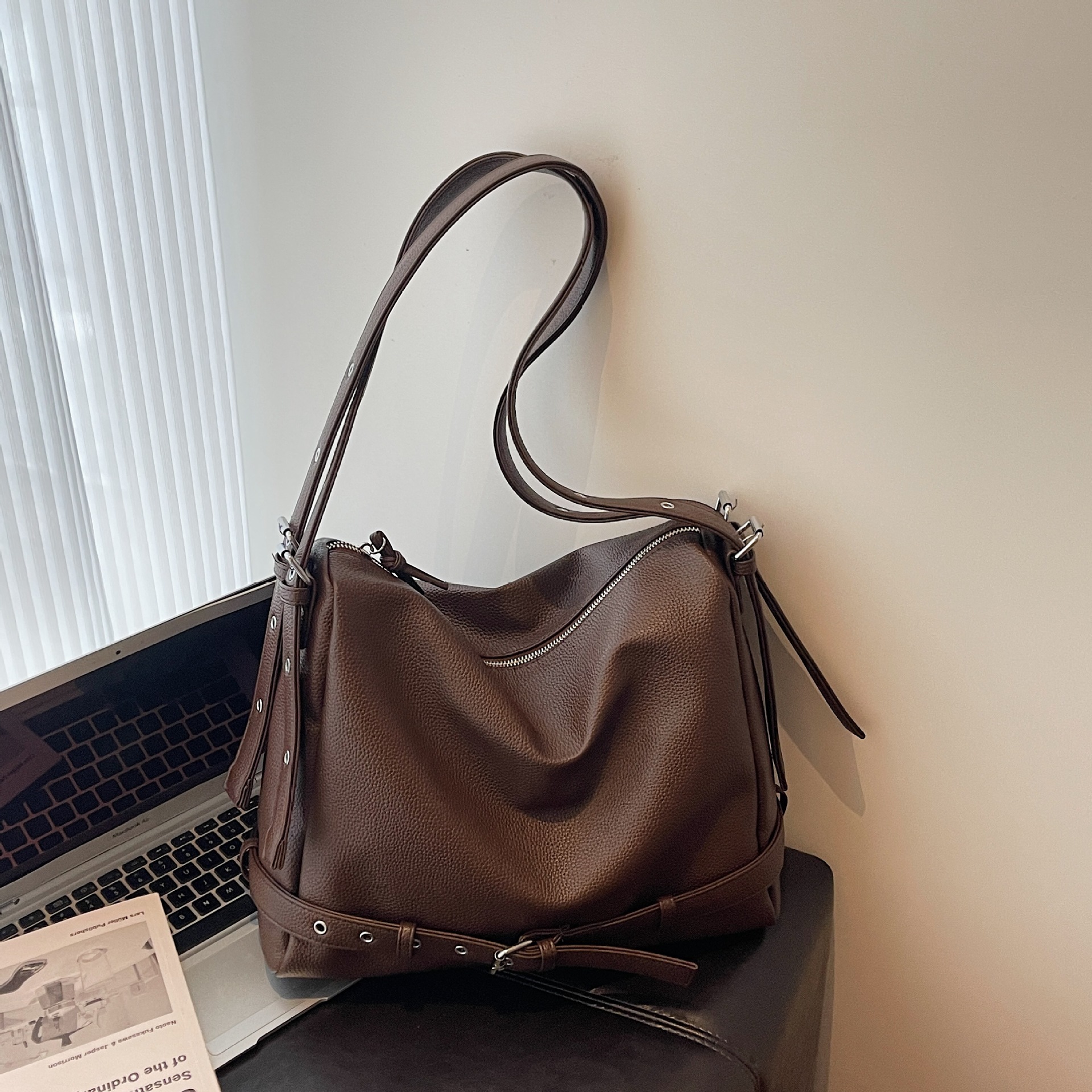 韩系ins大容量斜挎包欧美辣妹简约托特复古通勤单肩包机车斜挎包