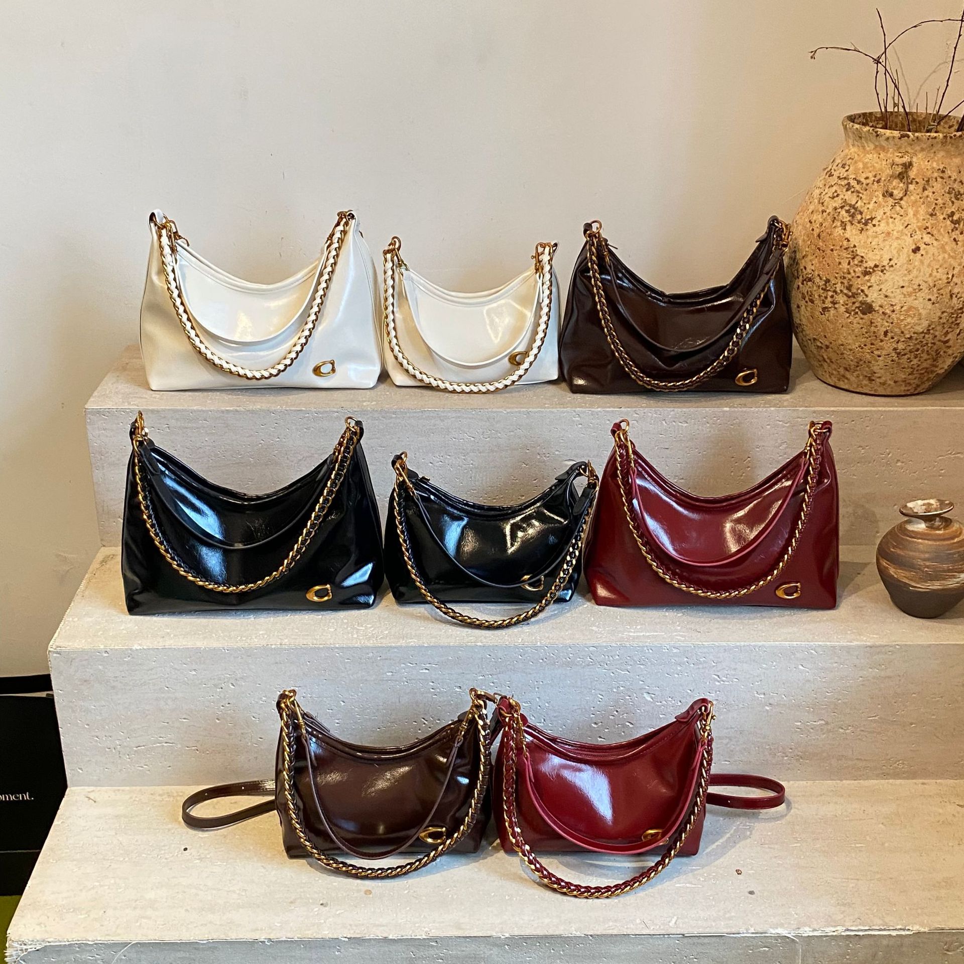 简约复古饺子包女士新款高级感腋下百搭链条单肩斜挎大容量手提包