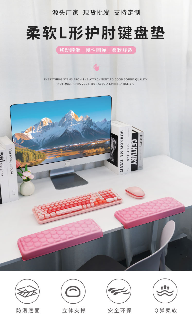 电脑桌面护肘垫边缘防硌神器纯色办公鼠标垫护腕防滑发泡键盘手托