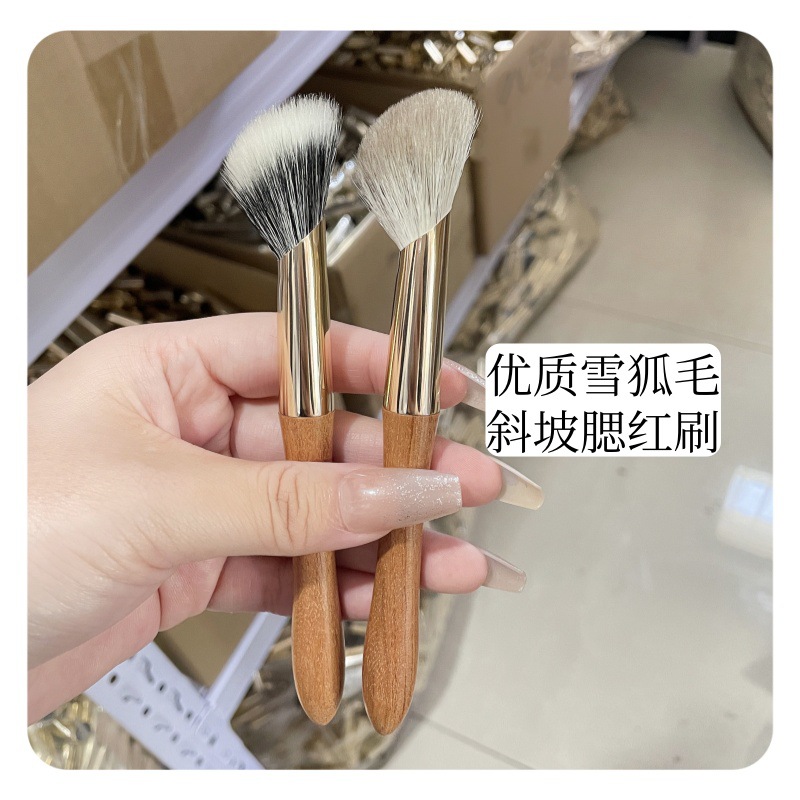 スノーフォックスファー スロープポイント ブラッシュ ハイライト アトモスフィアブラシ 正確にブレンドされた自然な発色 カンズ動物毛メイクブラシ