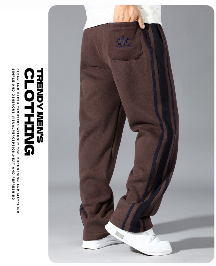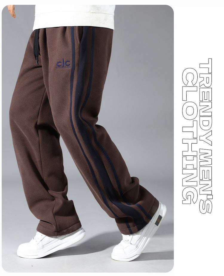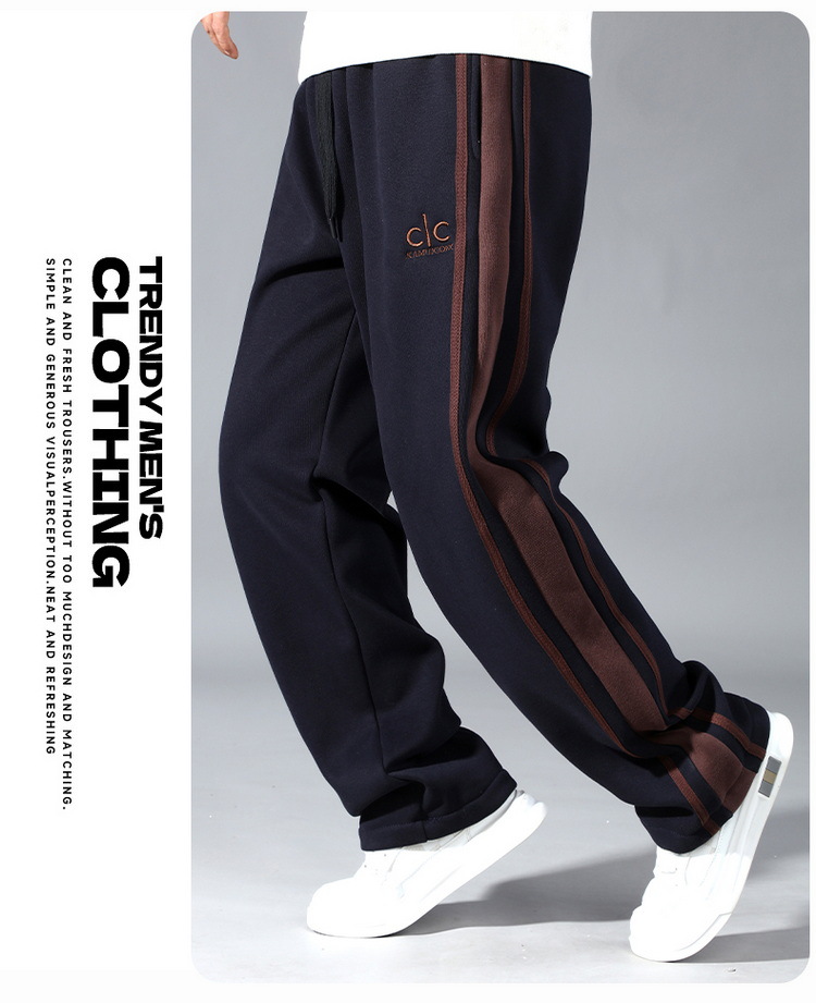 潮胖大码加绒加厚男装卫裤加肥加大宽松直筒松紧腰胖男生长裤刺绣