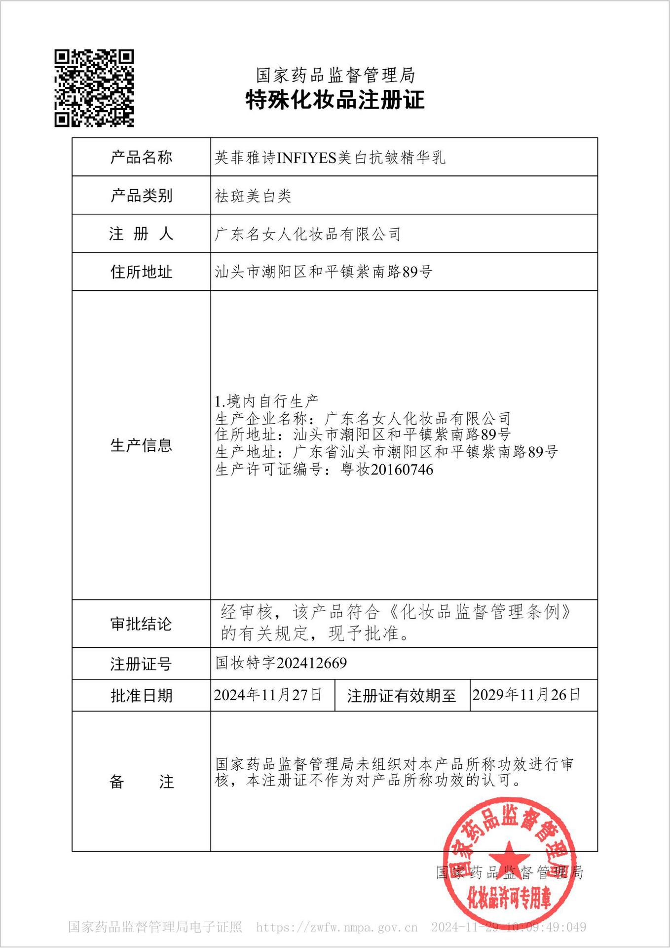 特妆产品名称 英菲雅诗INFIYES美白抗皱精华乳