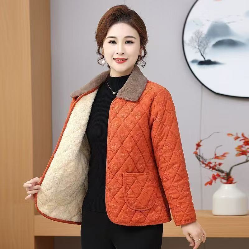 高档妈妈装秋冬款保暖加绒棉衣外套女新款加厚棉服中老年洋气棉袄