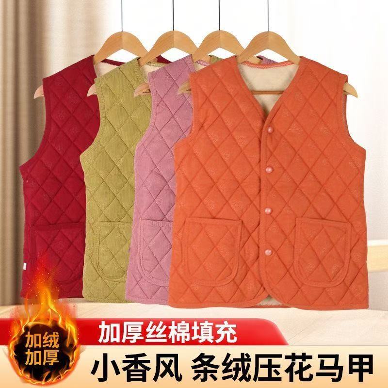 秋冬加绒加厚马甲新款灯芯绒中老年上衣保暖背心轻薄妈妈坎肩领