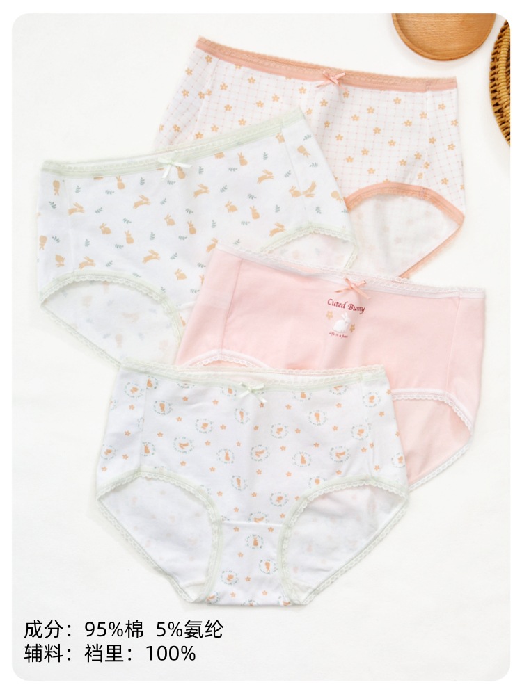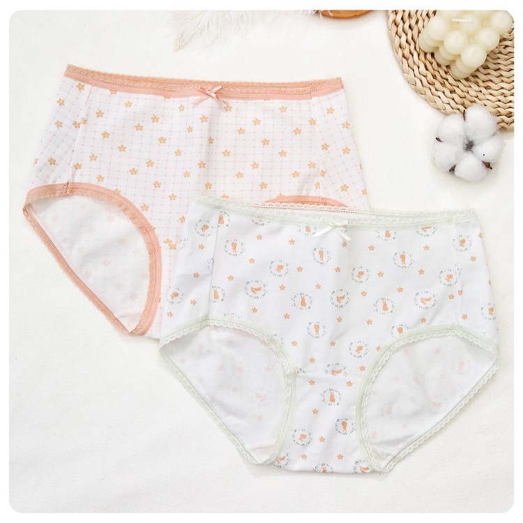 新款蝶安芬女士纯棉内裤2025柔软舒适透气印花中腰纯棉档2条盒装