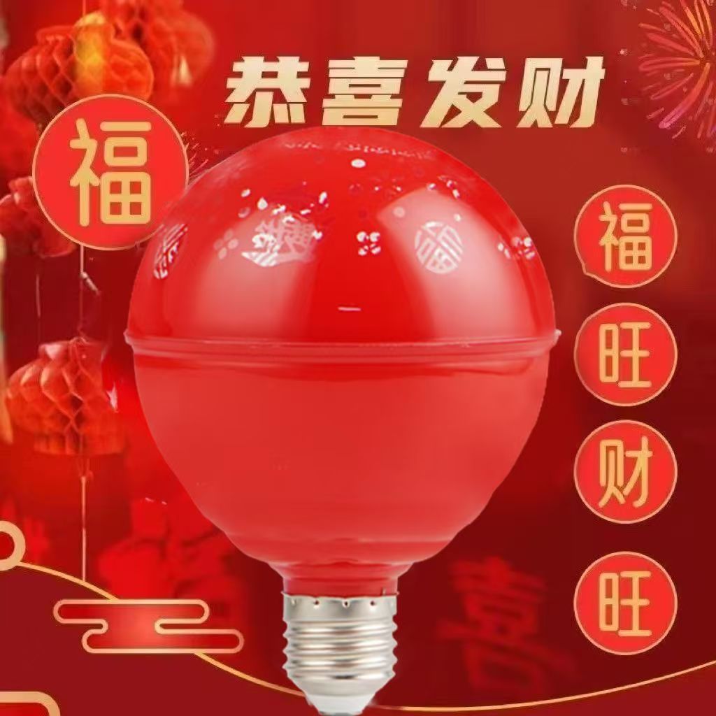 LED灯泡七彩福字灯新年E27螺口旋转彩灯过年春节装饰节能灯2026