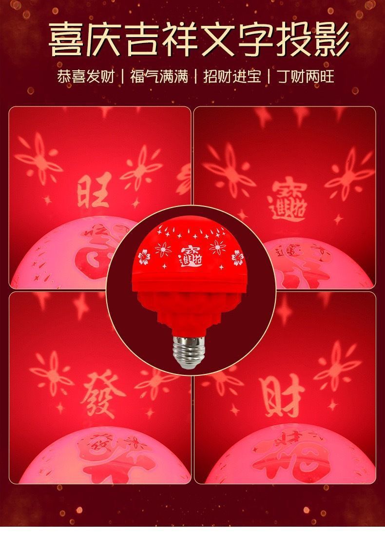 2026新款马年七彩变色福字灯泡过年春节喜庆投影氛围彩灯le发财灯