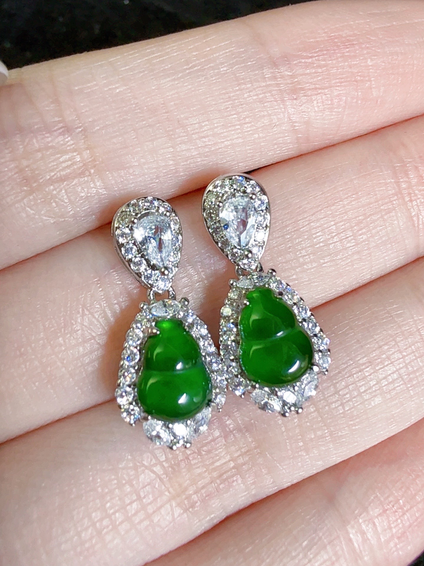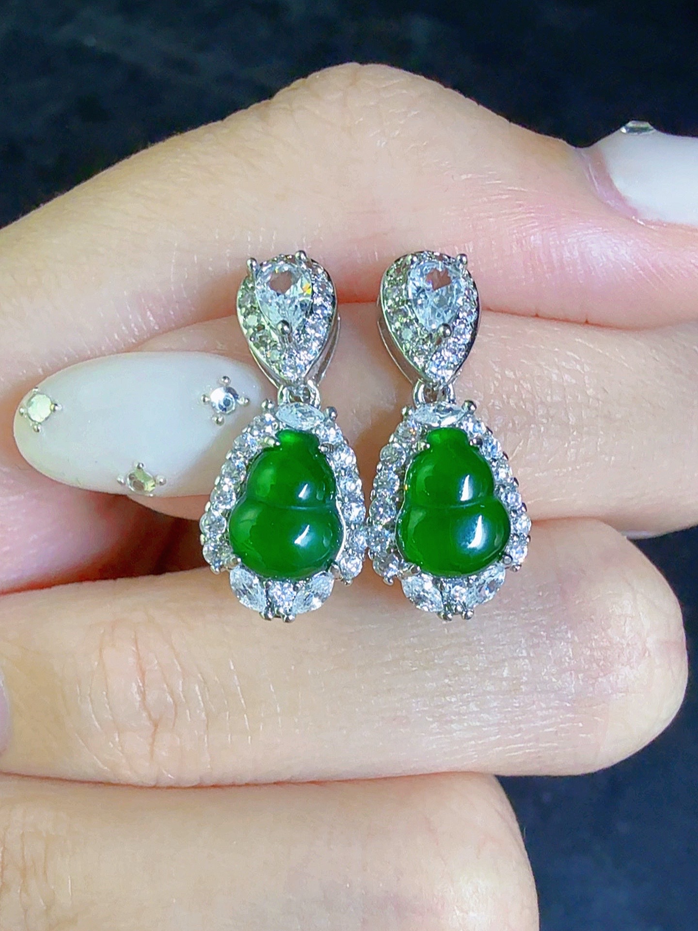天然A货翡翠耳饰轻奢时尚葫芦合金镶DIY耳钉气质高级感直播间爆款
