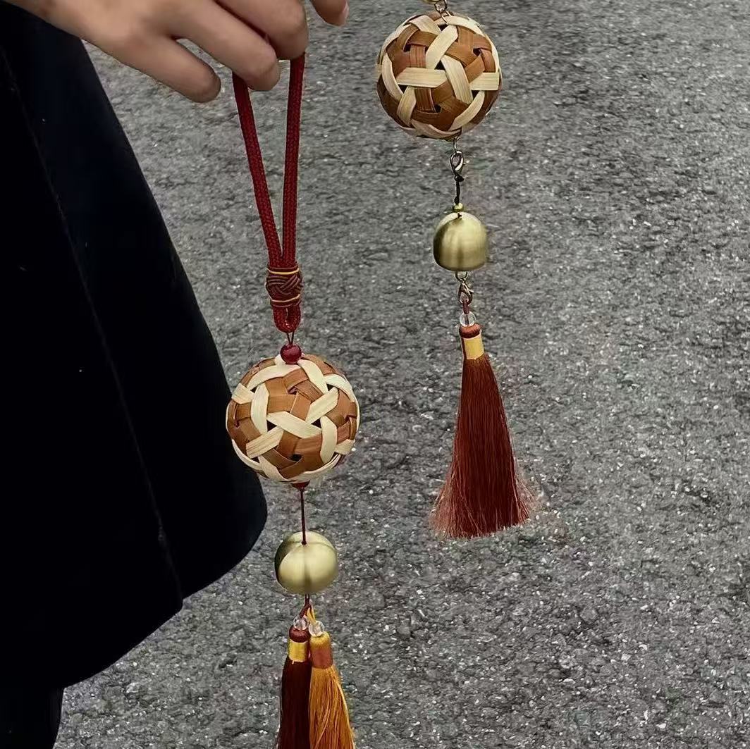 手工竹编蹴鞠球风铃挂件 新中式创意伴手礼 民宿庭院挂饰