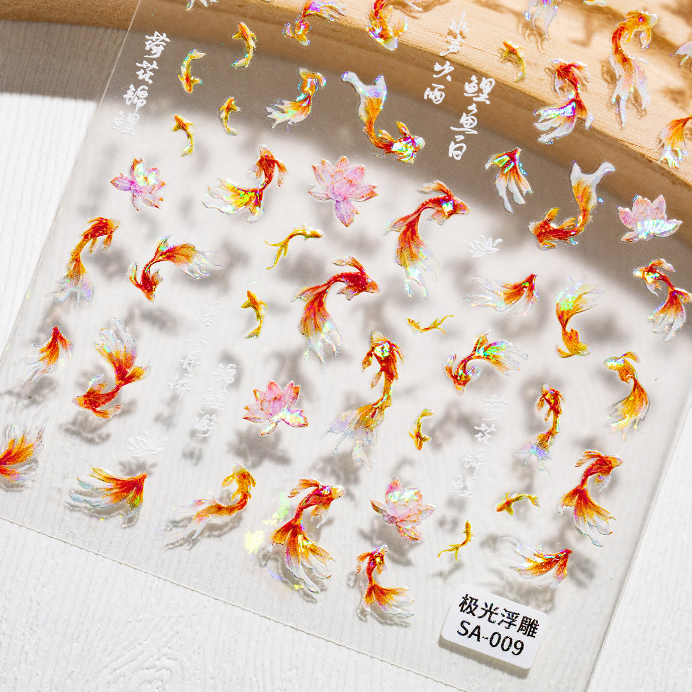 オーロラ鯉ネイルアートステッカーエンボス加工立体シェルライト富と幸運鯉ネイルステッカーアクセサリー SA スタイル