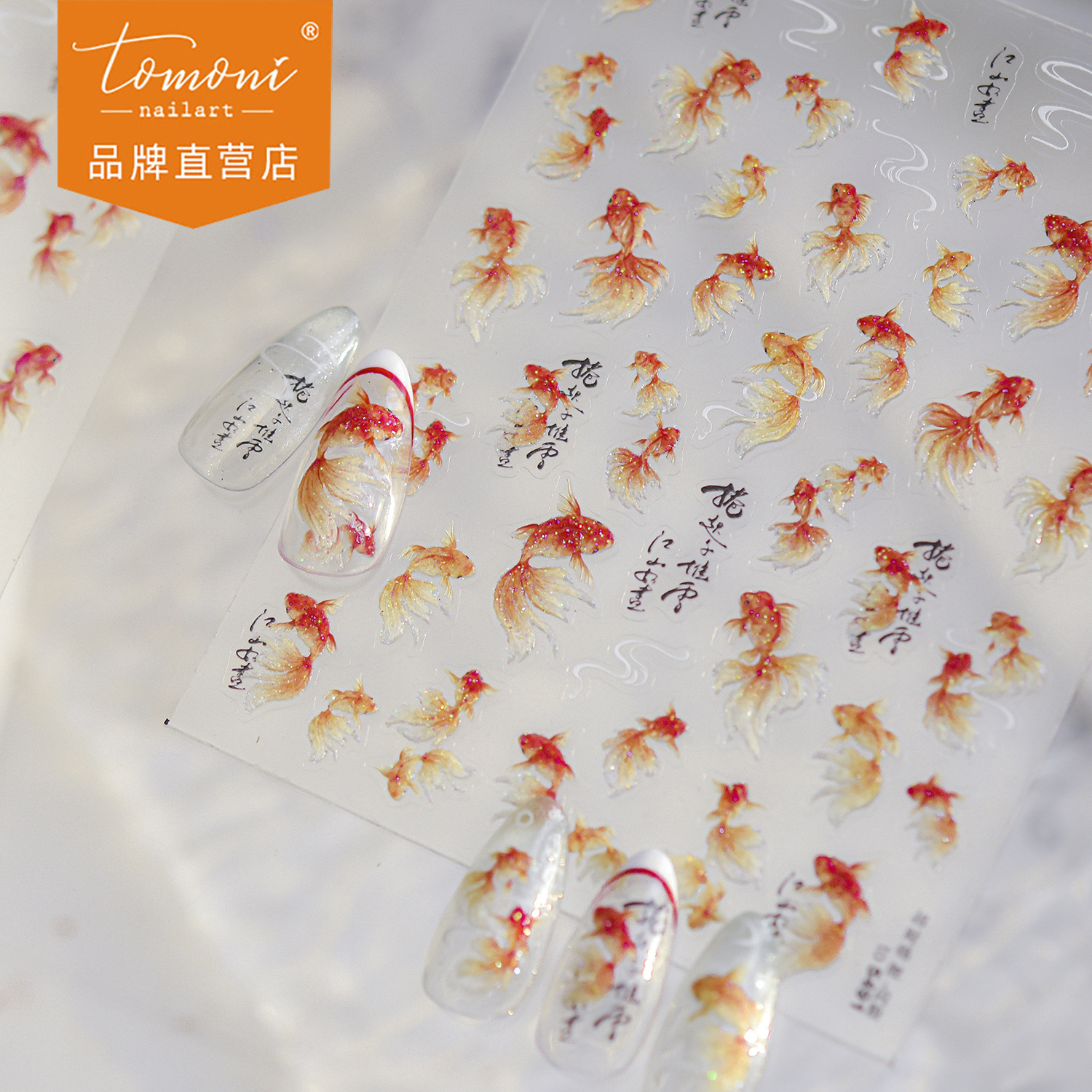 tomoni贝壳光美甲贴纸 爆款新中式指甲贴精致风招财锦鲤美甲配饰