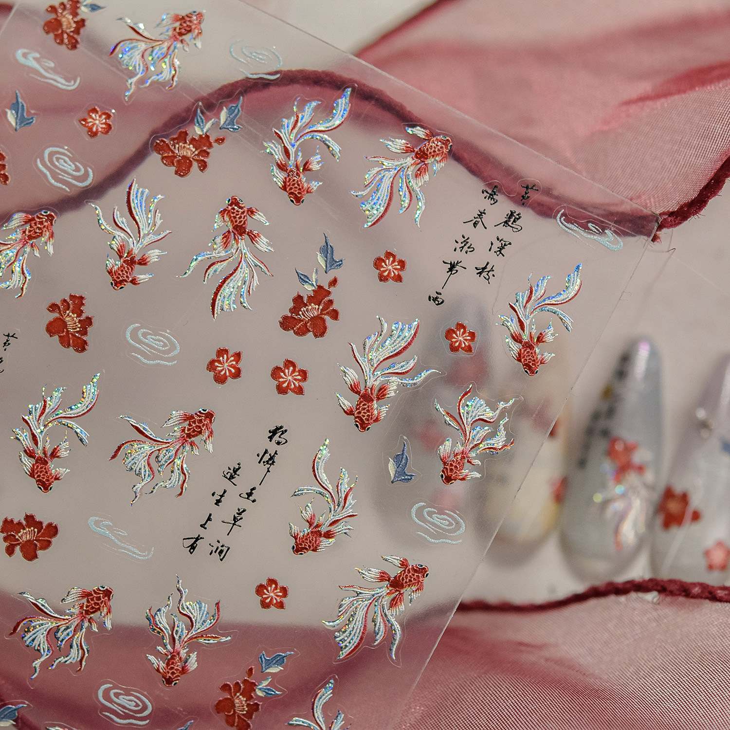 ネイルステッカー新作春江小錦鯉新中国風詩詞歌話レリーフネイルステッカー高級富貴