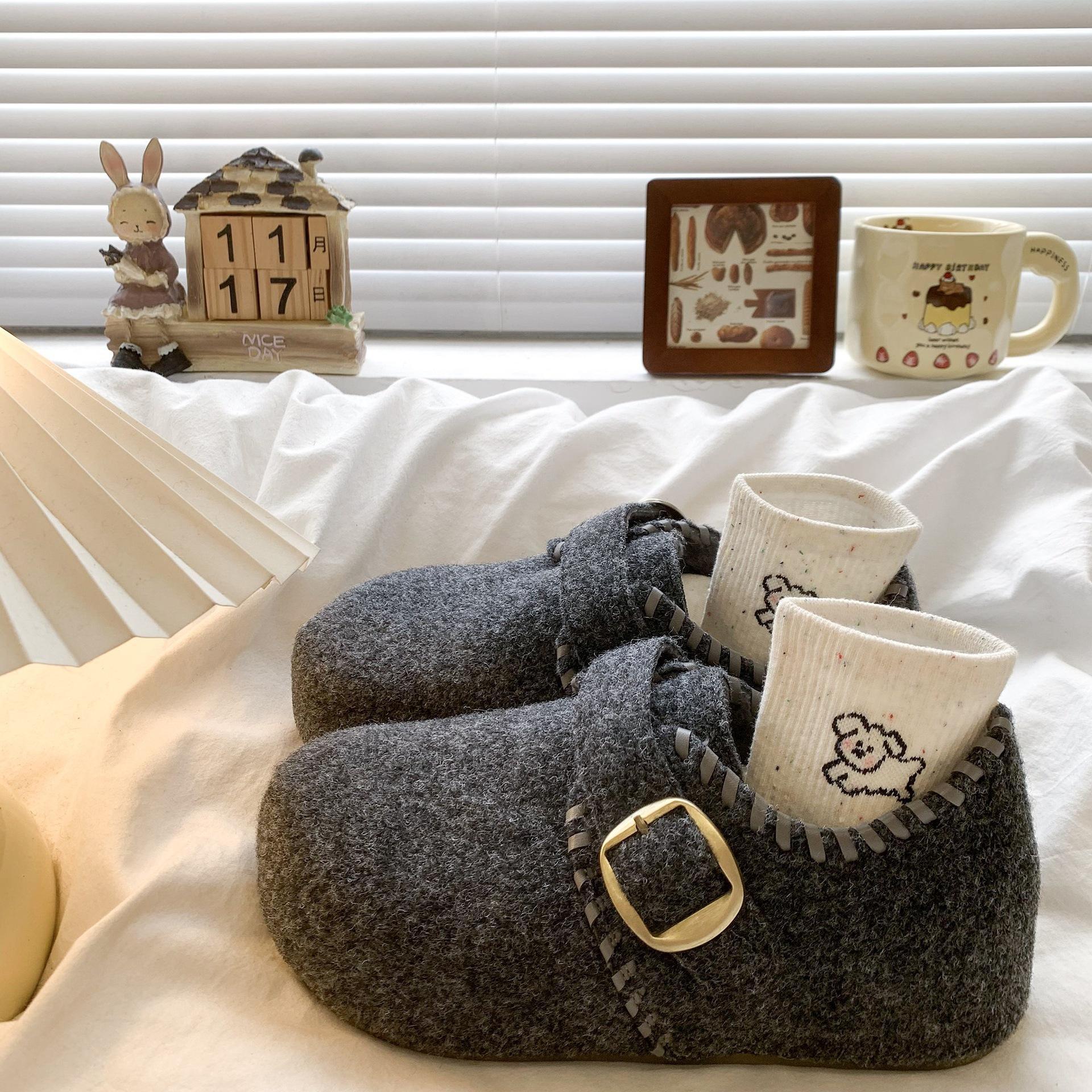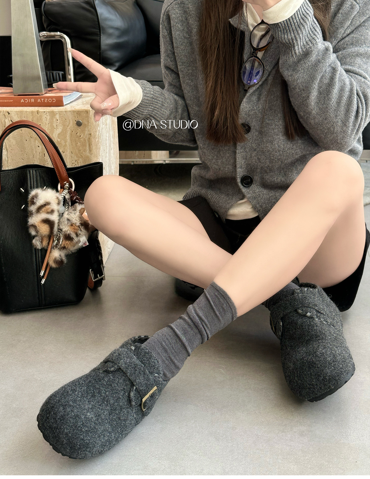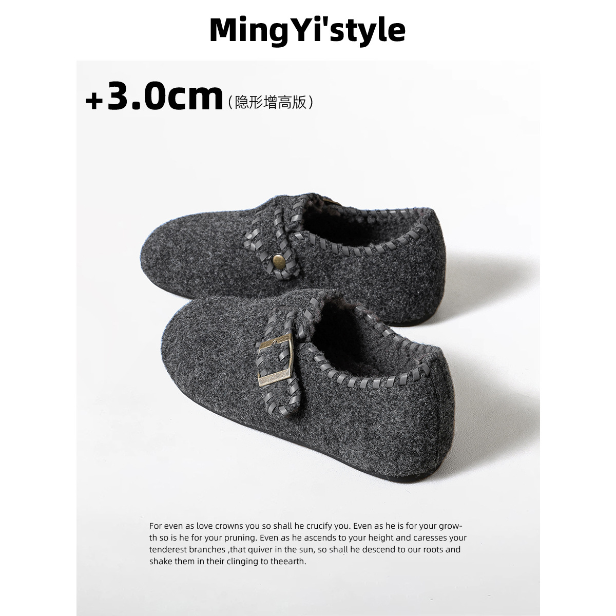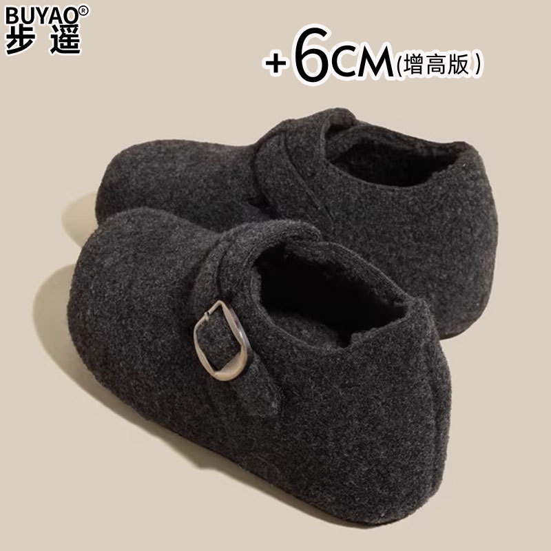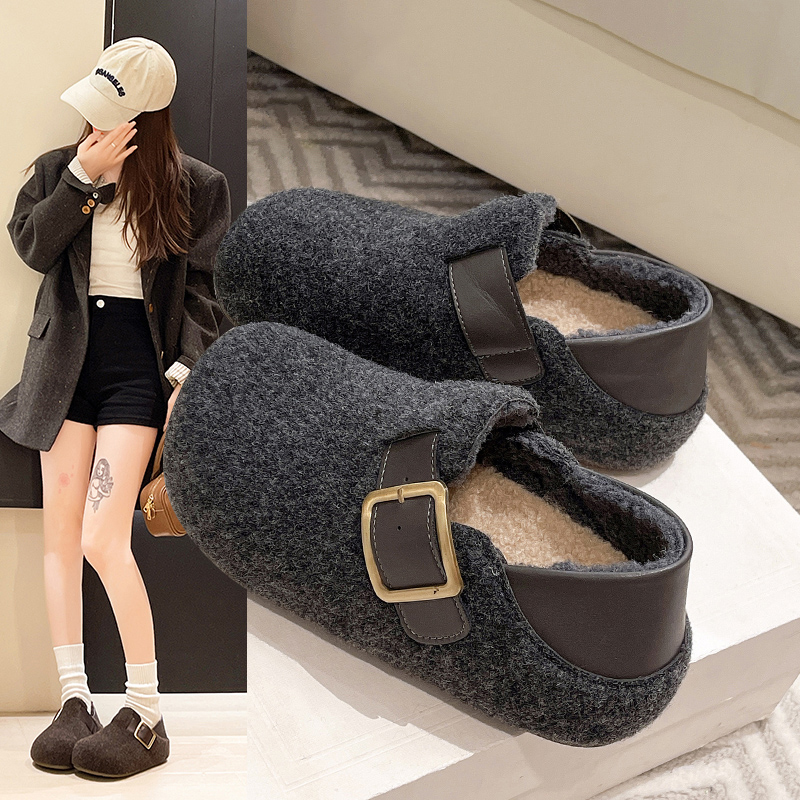 秋冬皮带扣毛呢勃肯鞋2025新款内增高两穿懒人鞋厚底加绒棉鞋女