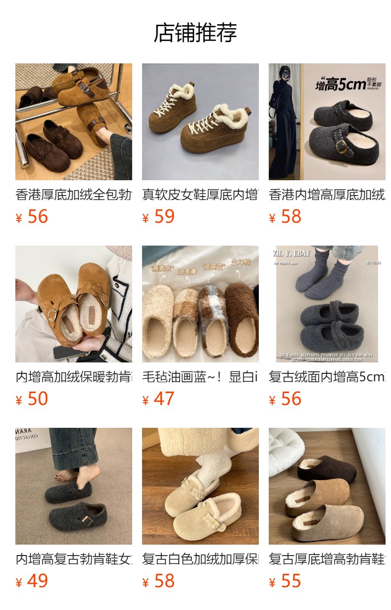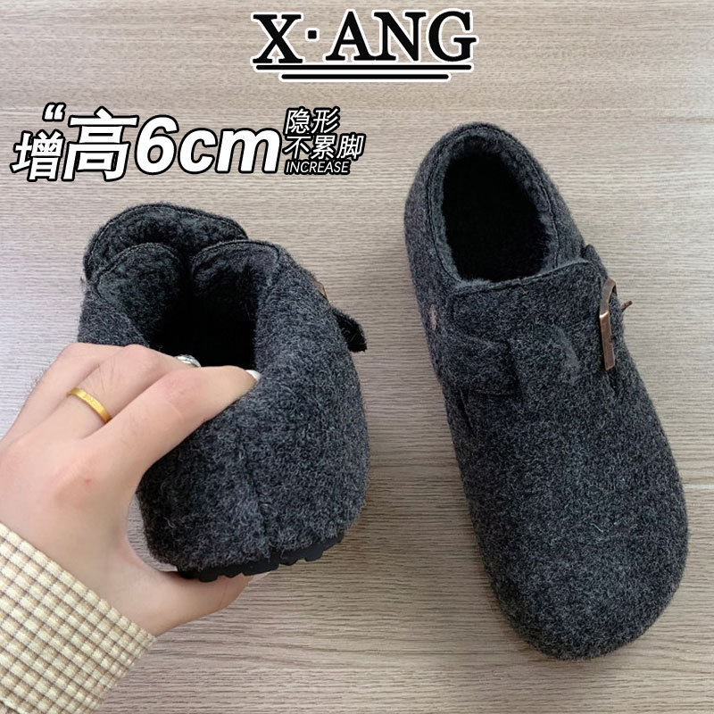羊呢绒全包内增高勃肯鞋小个子女鞋冬季加绒保暖棉鞋毛毛鞋乐福鞋