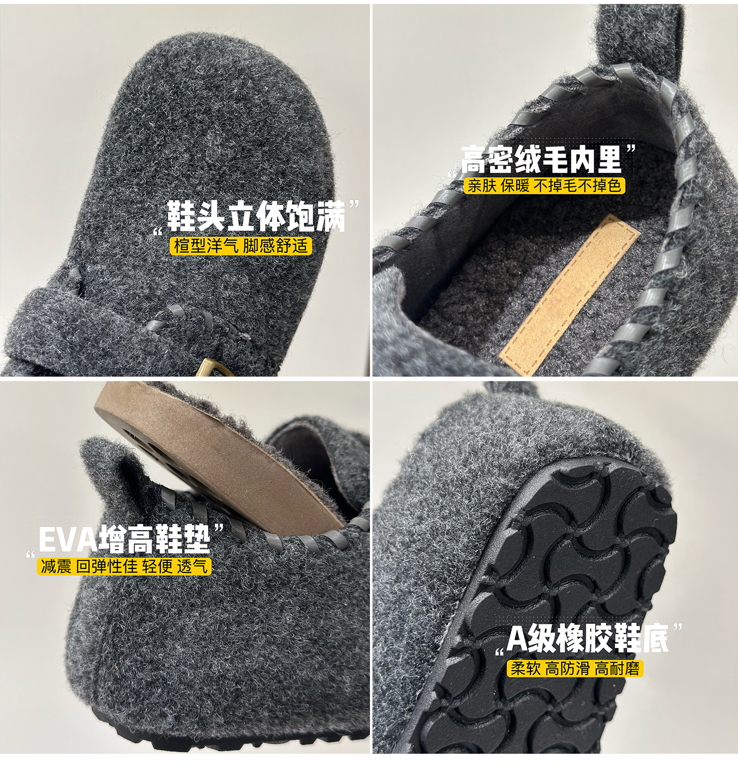 内增高毛呢加绒勃肯鞋女2025秋冬新款复古一脚蹬保暖豆豆鞋棉鞋子
