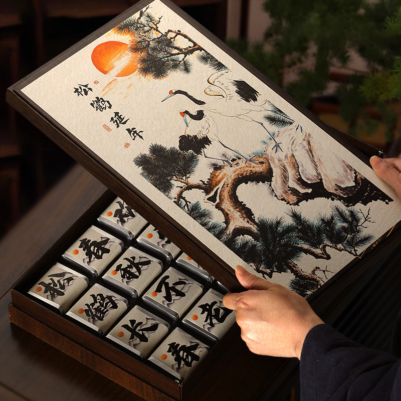 松鶴延年の創意は実木の赤い服のお茶の礼箱をまねて、目上の父と祖父の指導者の誕生日の贈り物を送ります。