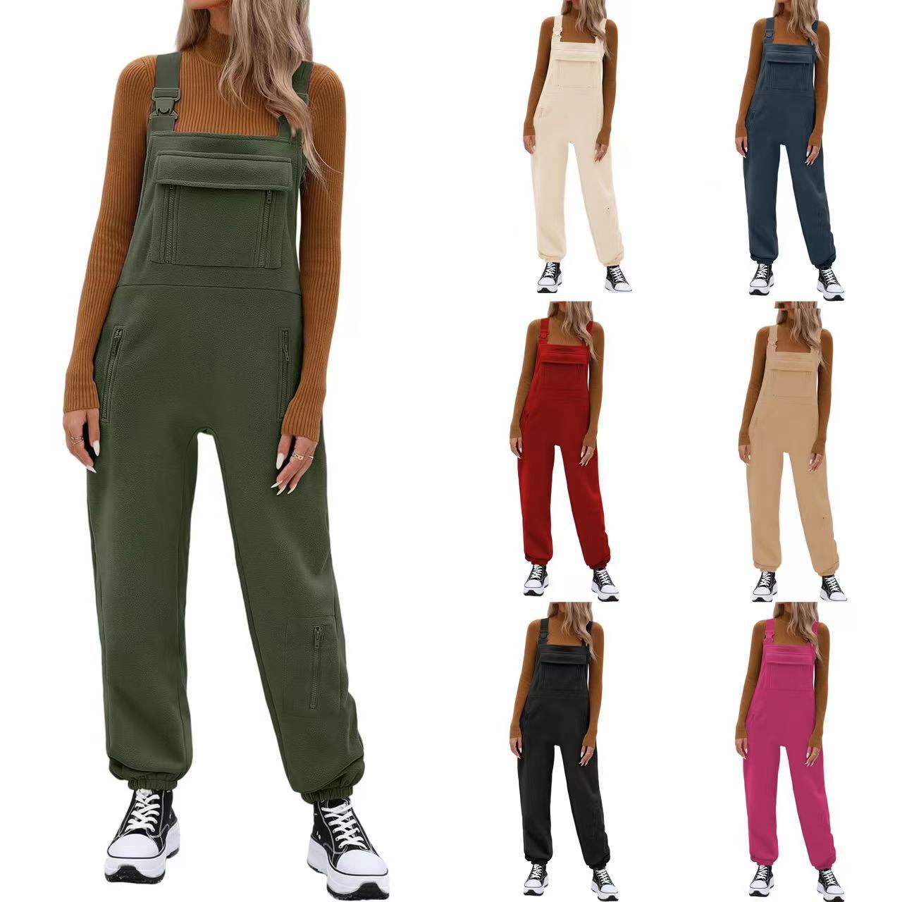 (在庫あり)2025年アマゾン冬物レディースワークウェアジャンプスーツ、ポーラーフリースサロペット、バックル付きパンツ
