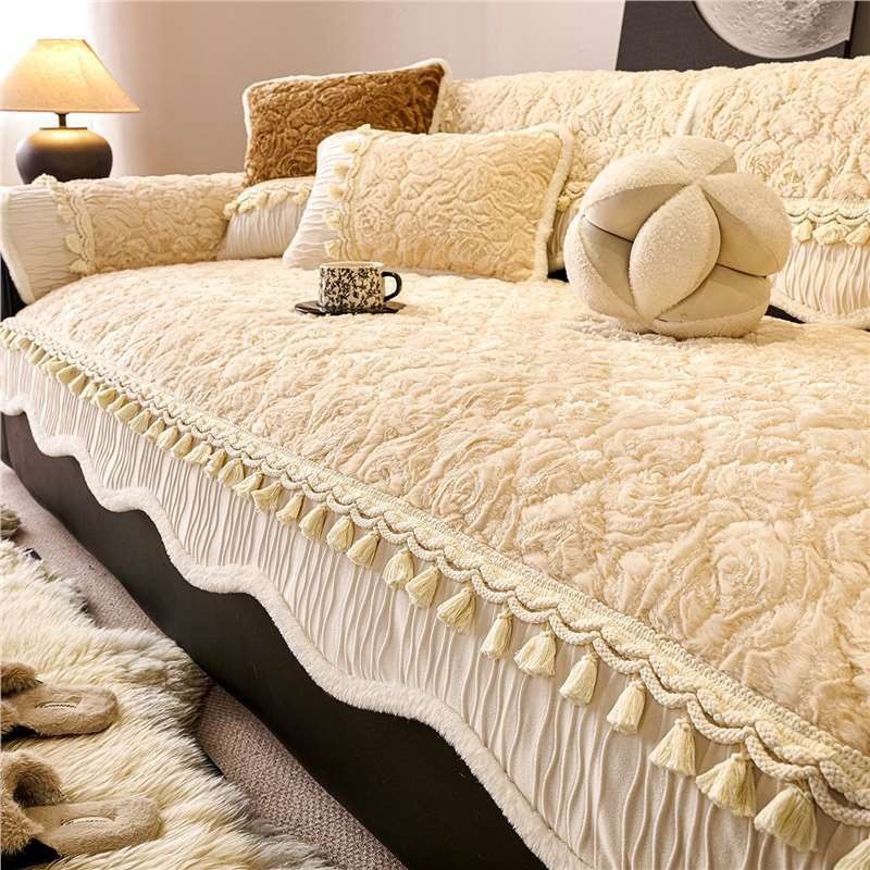 奶油风秋冬季毛绒沙发垫2025新款异形固定防滑坐垫子直排沙发盖布
