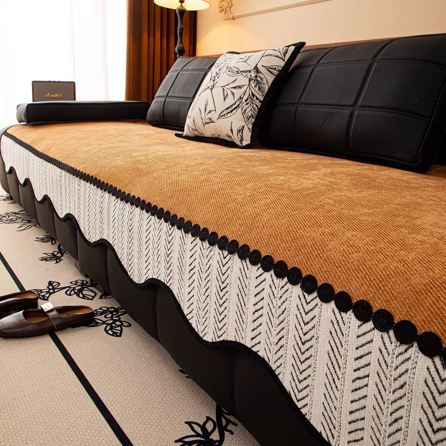 轻奢高级感雪尼尔沙发垫四季通用新款2025皮沙发套罩防滑坐垫盖布