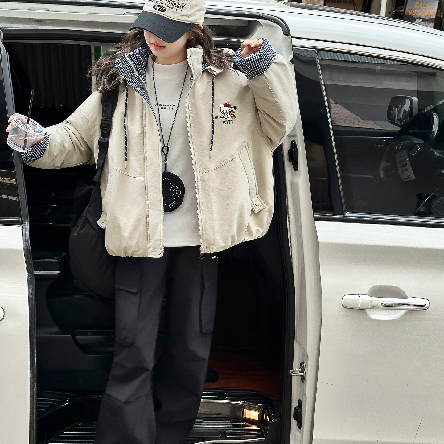 女童夹棉连帽卫衣外套2025冬装新款大童韩版休闲卡通KT猫二棉棉服