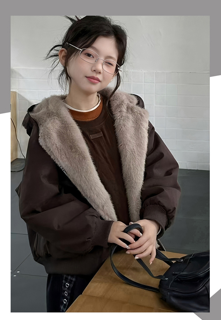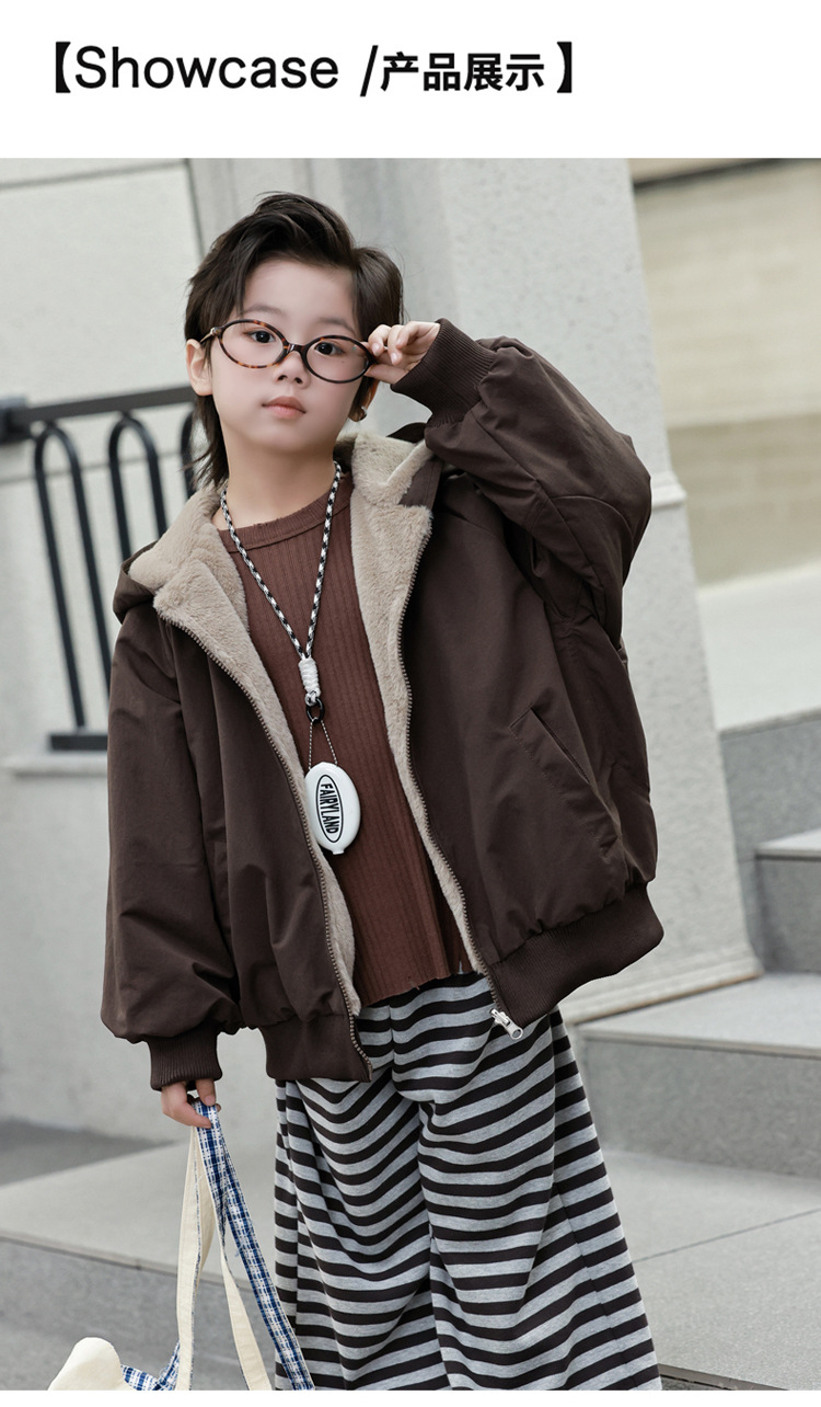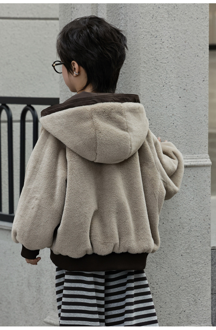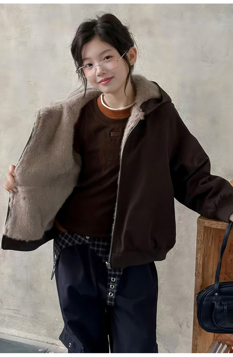 女童加绒加厚派克服2025冬装新款大童韩版洋气兔毛夹克工装外套潮